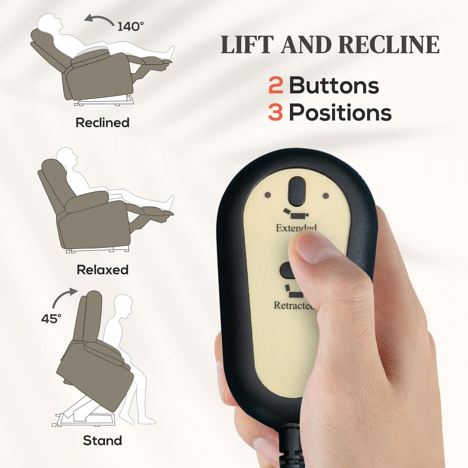 - Effortless Lift and Stepless Recline: With a gentle yet powerful mechanism, this power lift chair elevates you smoothly to a near-standing position, as well as a stepless reclining angle up to 150°—tailored relaxation at your fingertips with remote
