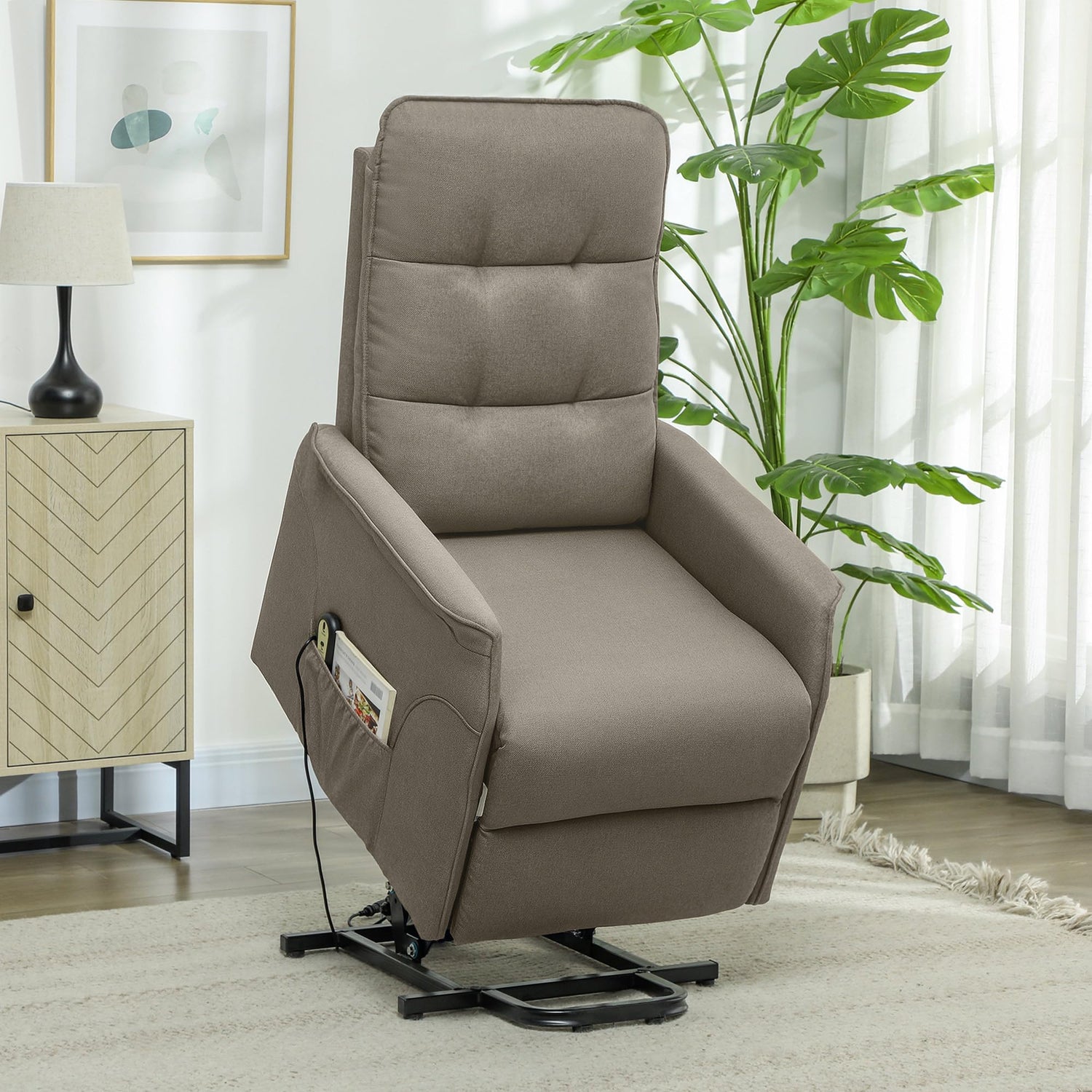 HOMCOM Power Lift Recliner Chair for Elderly, Fabric Lift Chair Sofa with Remote Control, Side Pockets, Pocket Spring, Tufted Back, Quick Assembly, Coffee