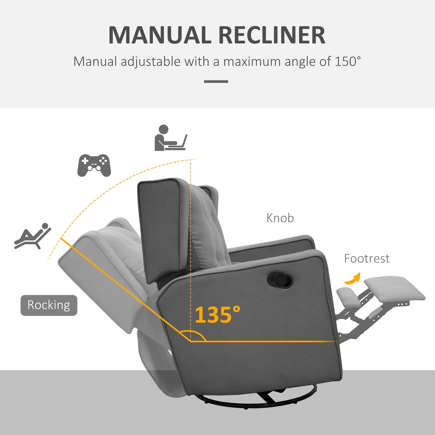 HOMCOM Wingback Swivel Recliner Chair Glider Rocking Chair for Nursery with Button Tufted, Padded Single Home Theater Seater for Living Room Bedroom, Grey
