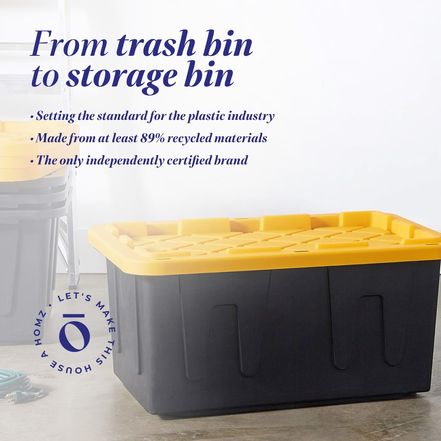 HOMZ 2-Pack Durabilt, Heavy Duty Plastic Storage Bins with Lids, 15 Gallon, Black/Yellow - Stackable Container Boxes for Home, Attic, and Garage Organization