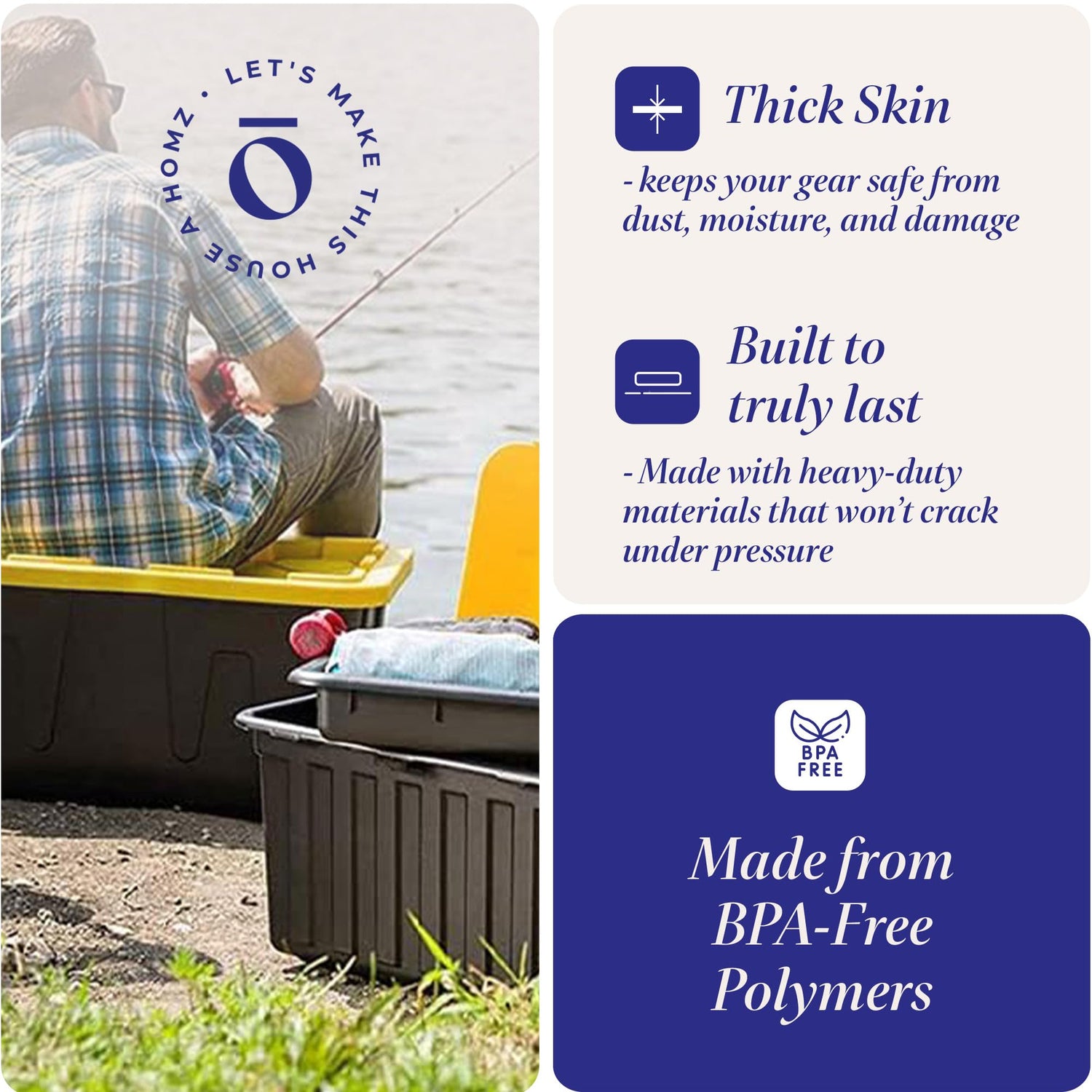 - Plastic Storage Bins: Be the boss of your home and garage with our 15-gallon tote set. This 6-piece storage box set will let you master any mess and become the king or queen of organization.