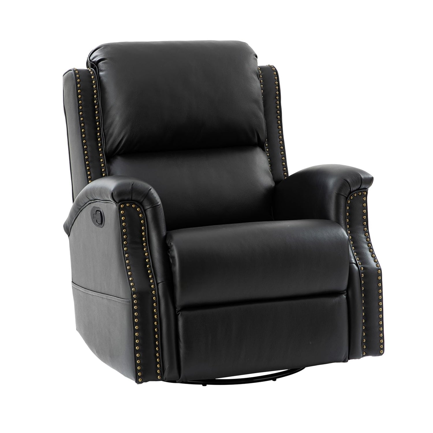 HULALA HOME Genuine Leather Recliner Chair, 360 Swivel Rocker Chair with Thick Seat, Classic Push Back Armchair with Backrest, Nailhead Trim, Black