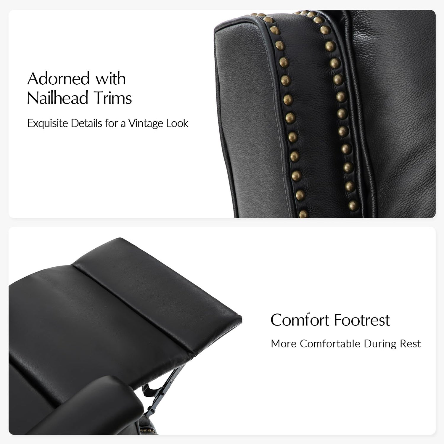 - Nailhead Trims: Features elegant nailhead accents and a comfort footrest for a vintage look, adding sophistication to your home decor.