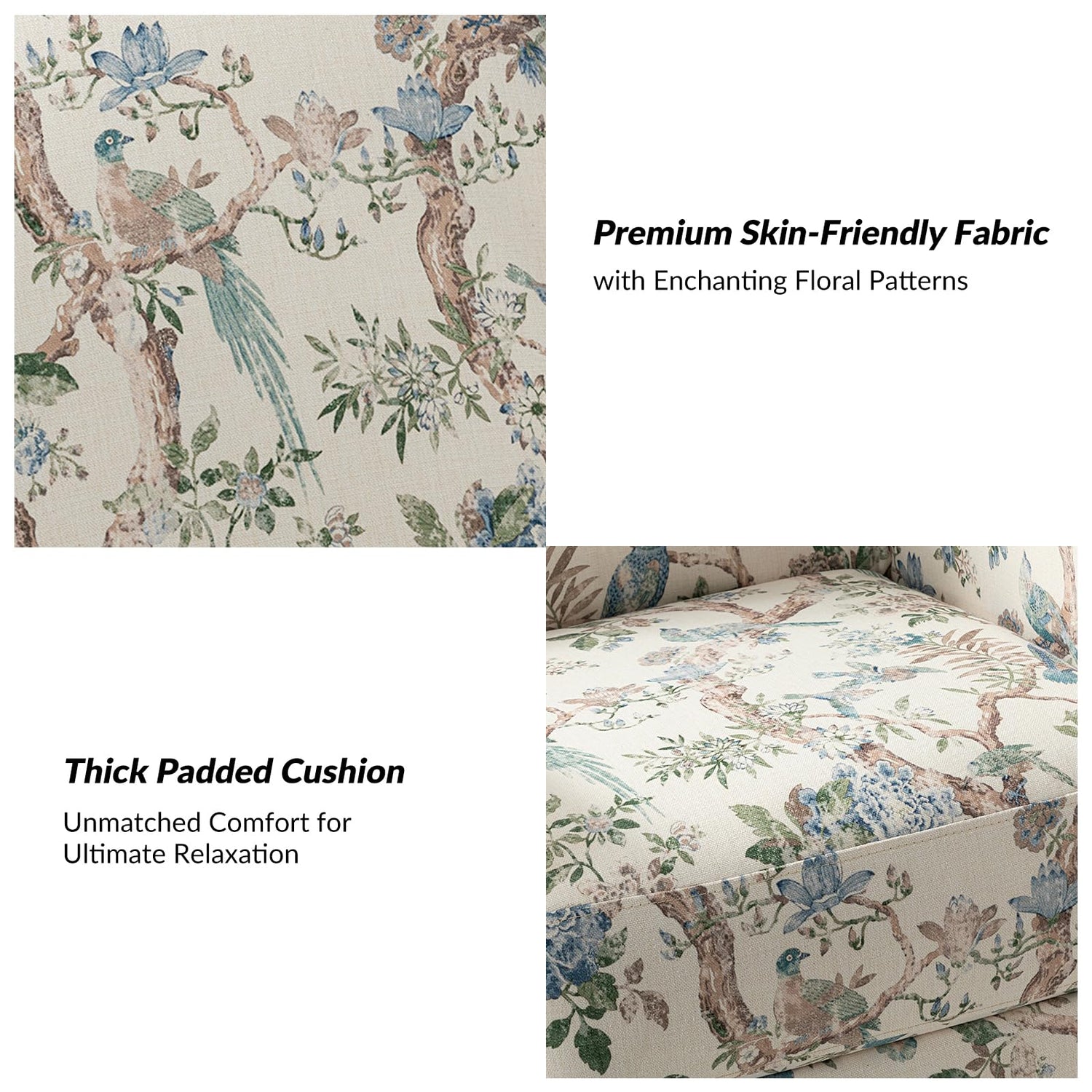 HULALA HOME Printed Fabric Manual Swivel Glider Recliner, Wingback Rocker, Push Back Recliner Chair with Adjustable Backrest & Footrest, Armchair Sofa 360 Degree Swivel for Living Room, Floral