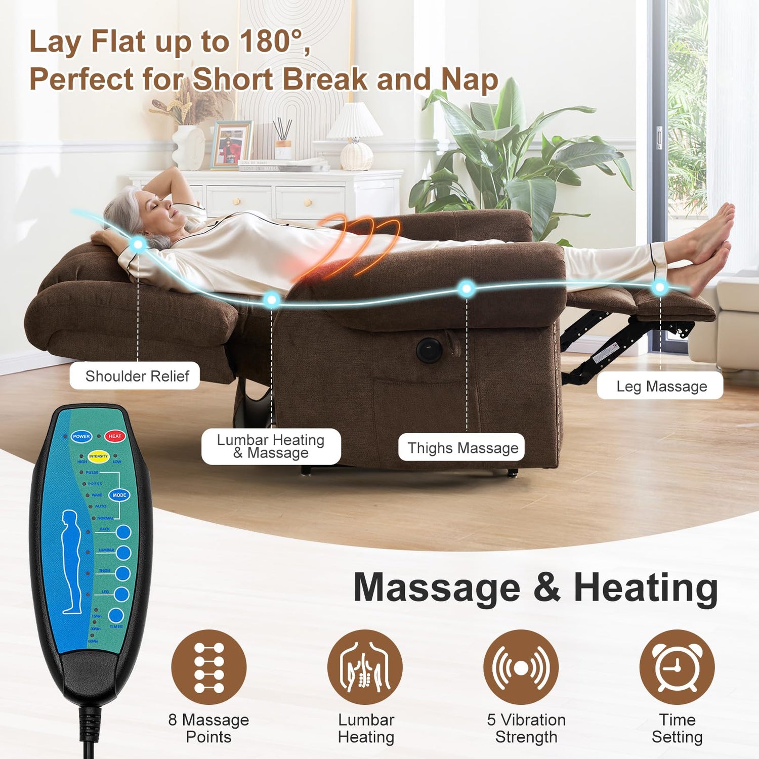 HUSFU Dual Motor Lay Flat Power Lift Recliner Chair for Elderly with Heat and Massage, Infinite Position Large Recliner Chairs w/USB Ports and Remote Control,Chenille,Brown