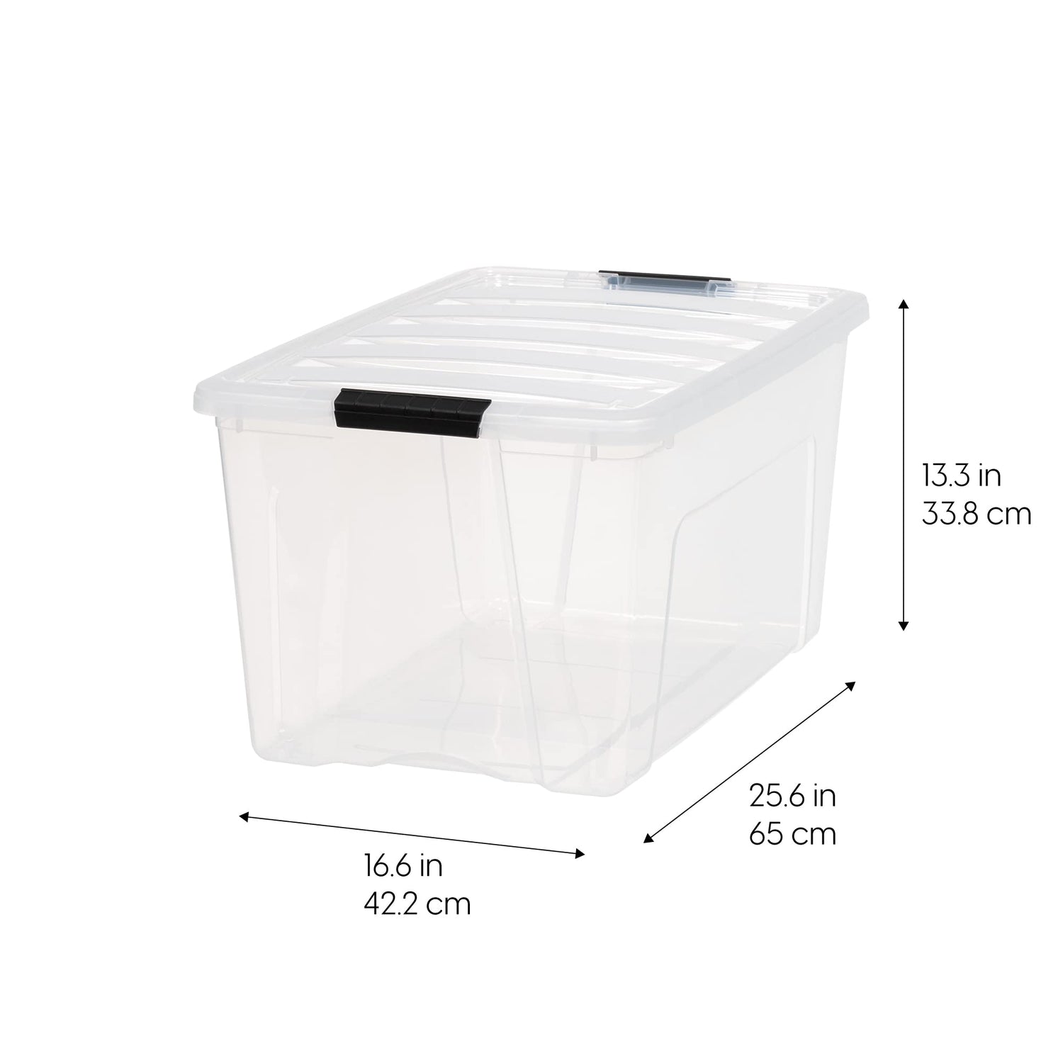 IRIS USA 72 Qt Stackable Plastic Storage Bins with Lids, 4 Pack - BPA-Free, Made in USA - See-Through Organizing Solution, Latches, Durable Nestable Containers, Secure Pull Handle - Clear