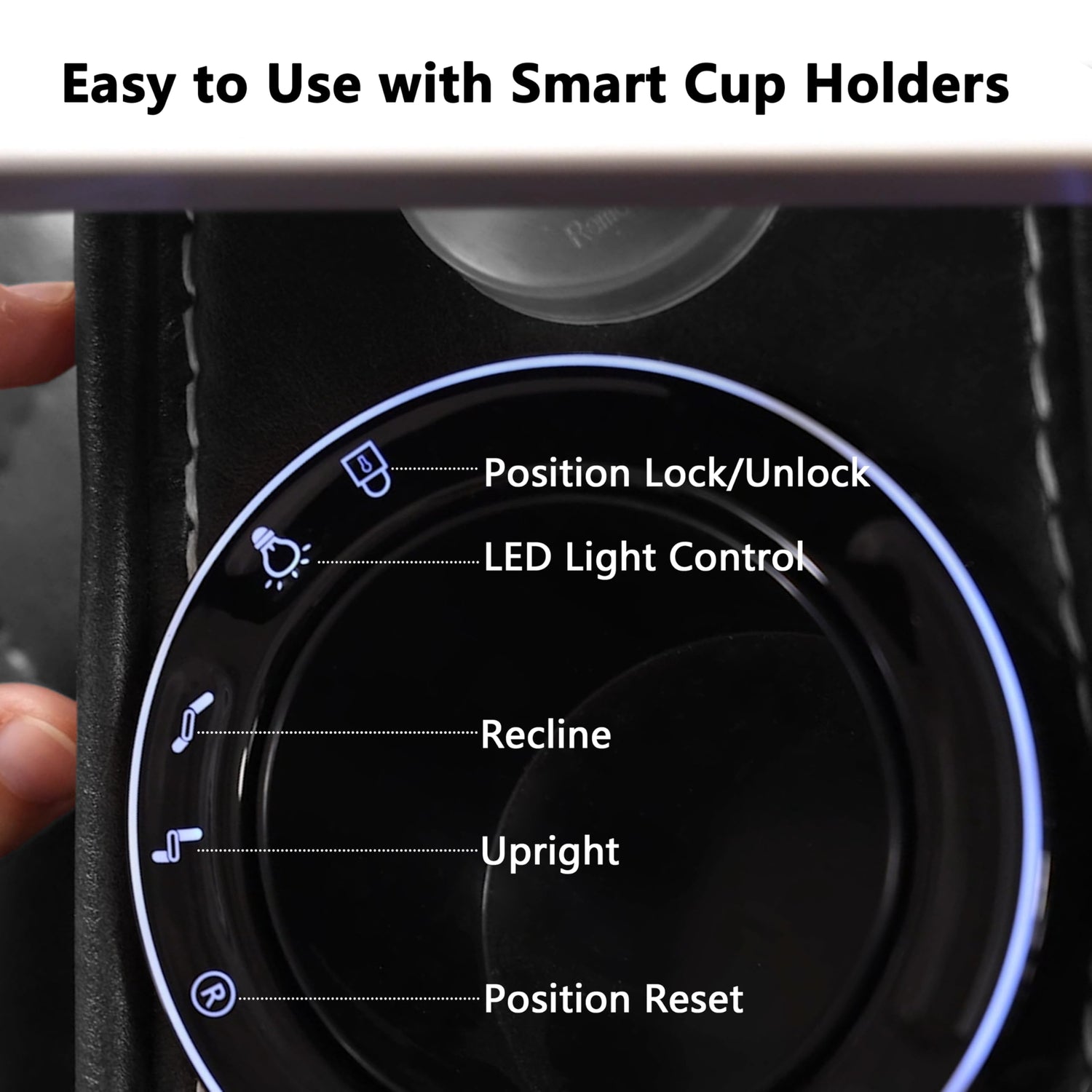- 【Easy to Use with Smart Cup Holders】Our power recliner equipped with two smart cup holders. Each cup holder has touch buttons that control the chair's recline, upright, position reset, position lock/unlock, and base LED lighting. In addition, each cup holder is equipped with a USB charging port. You can easily operate your chair to meet your different needs by simply touching the corresponding control buttons.