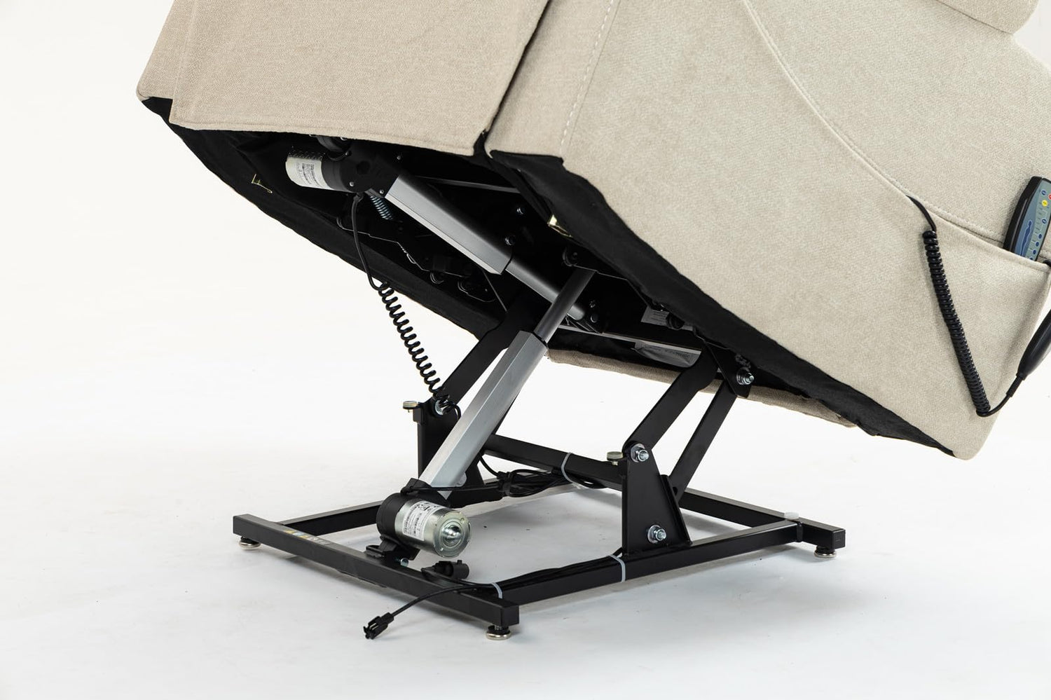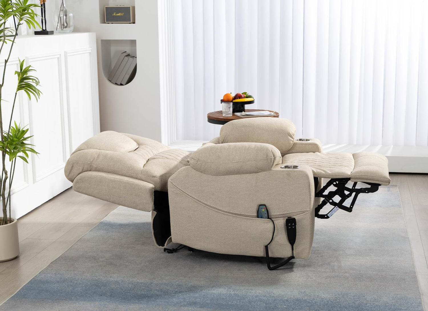 Details: This premium recliner chair can lay flat at 180°, specially designed for those who require a bit more space and comfort. Our oversized lift chair, with a 25-inch seat width and a 74.2-inch length when fully reclined, is perfect for big and tall individuals. With two remote controllers, you can easily control the massage, heating, and lifting functions, making it the perfect place to relax after a long day. The remote control offers flexible positioning, allowing you to stop it at any time. This heavy-duty lift chair can up to 400 pounds, ensuring stability and durability for bigger individuals.The backrest and footplate can be opened separately, controlled by the same remote control, with a unique design that enhances your comfort.The heated massage chair features a 100% super soft and durable polyester microfiber pouch, offering you a comfortable seating experience that is also stain-resistant.Plus, our chair comes with storage side pockets on both sides, giving you convenient storage space for your essentials. Experience the ultimate relaxation and comfort with our premium recliner chair.