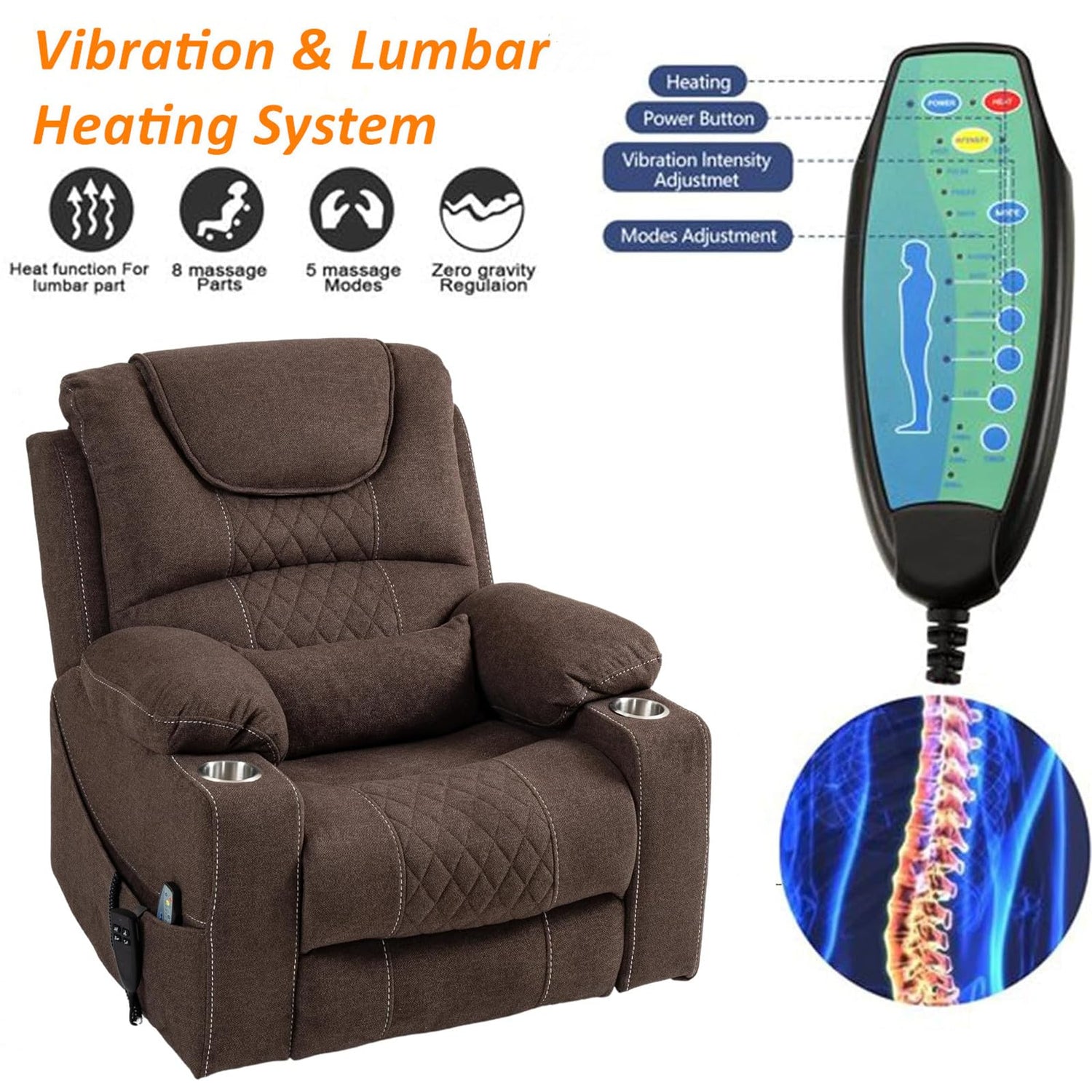 - Multi-Function Massage - Elevate your relaxation experience with the multi-function massage feature. Choose from 5 different massage modes to customize your experience and target specific areas of your body. The integrated heating function provides soothing warmth to the lumbar area, promoting muscle relaxation and a heightened sense of comfort.