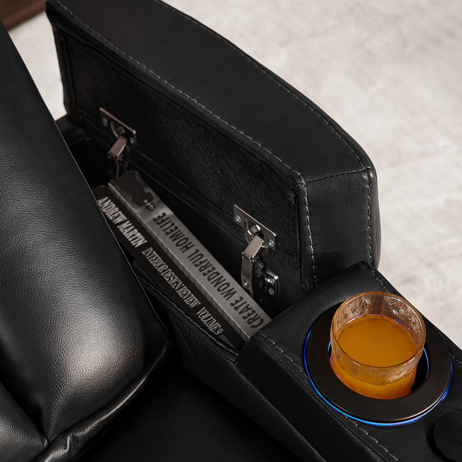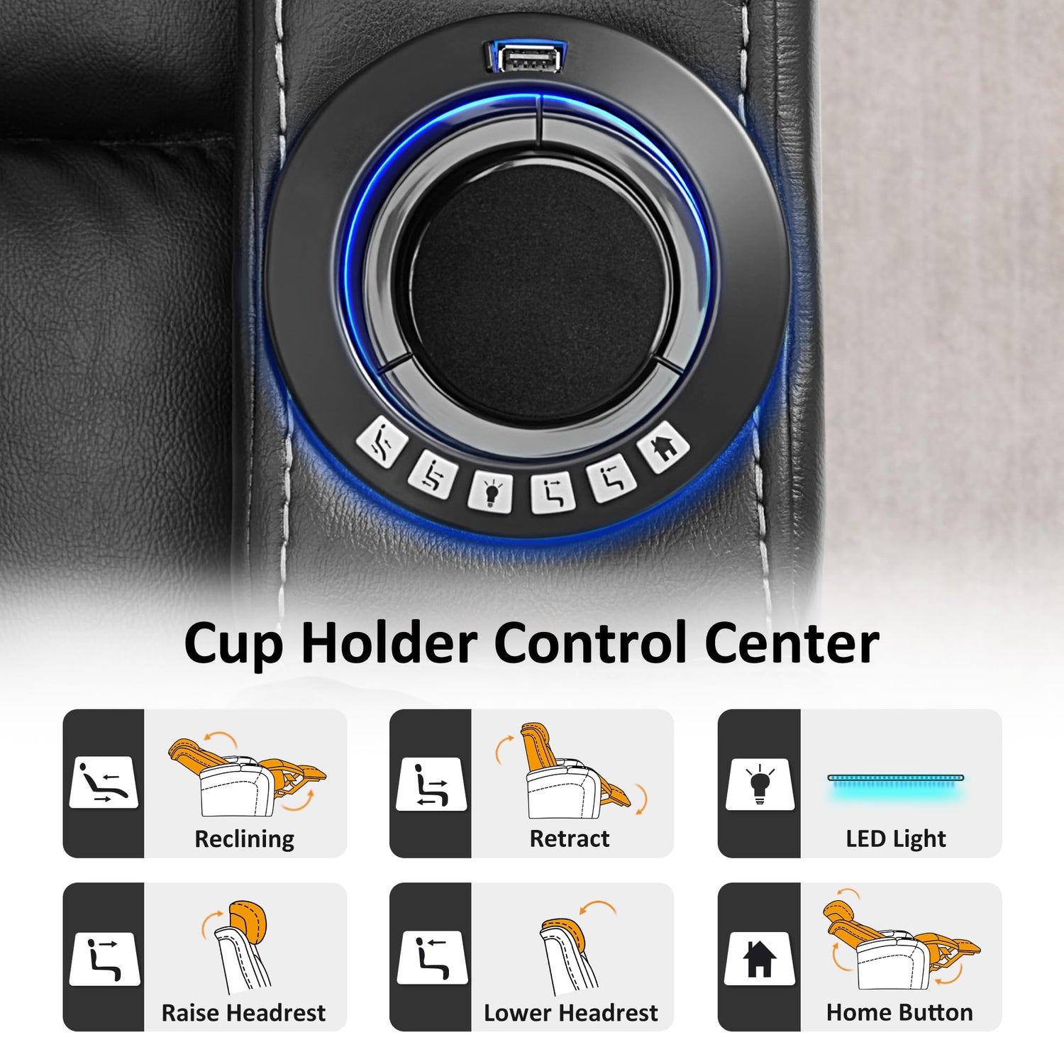 - Smart Cup Holders with LED Glow: Control your recliner chair at your fingertips with touch-sensitive buttons on the illuminated cup holders. Blue LED lights on the cup holders and base create a futuristic, theater-like ambiance