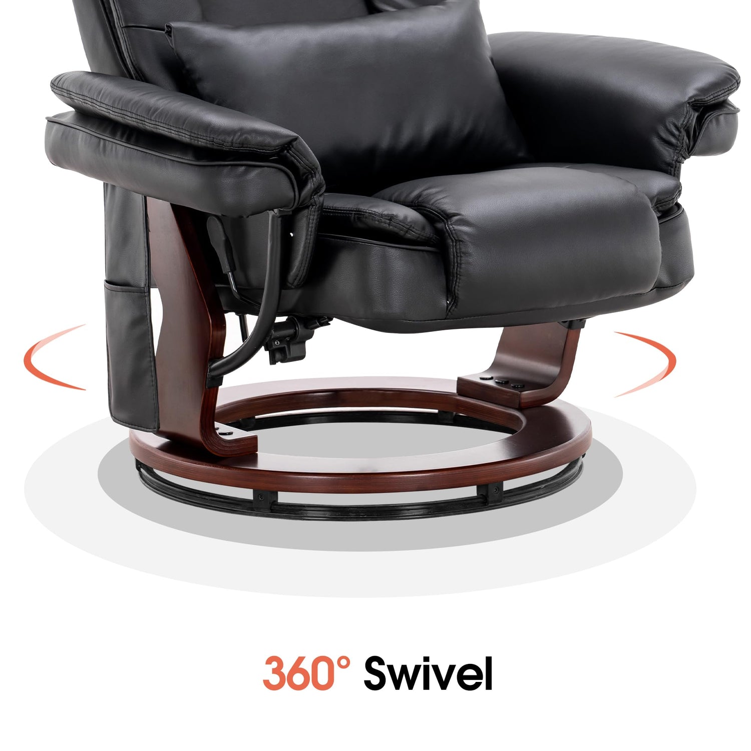 MCombo Swivel Recliner with Ottoman Chair, TV Chair Sets with Vibration Massage, for Small Space Living Room Bedroom 9096 9099 (Textile, Black)