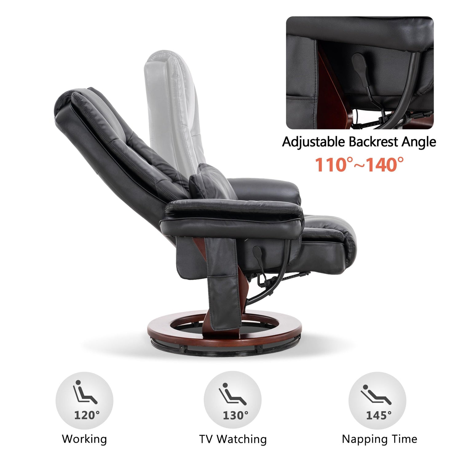 - Adjustable Recline with Ottoman: Manually reclines from 110 to 140 degrees with side handle; paired ottoman offers full leg support for reading or watching TV