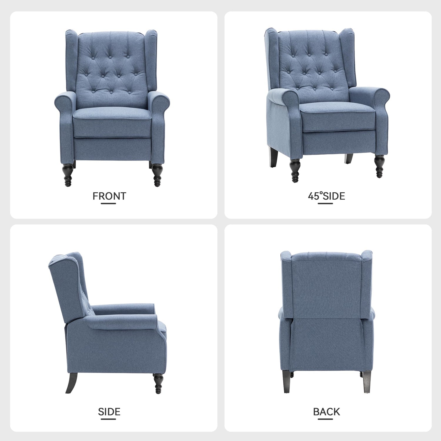 Mid Century Wingback Recliner Chair for Adults, Modern Linen Fabric Push Back Recliner Chairs with Button Tufted Upholstered Back & Footrest, Manual Recliner Chais for Living Room, Nursery, Blue