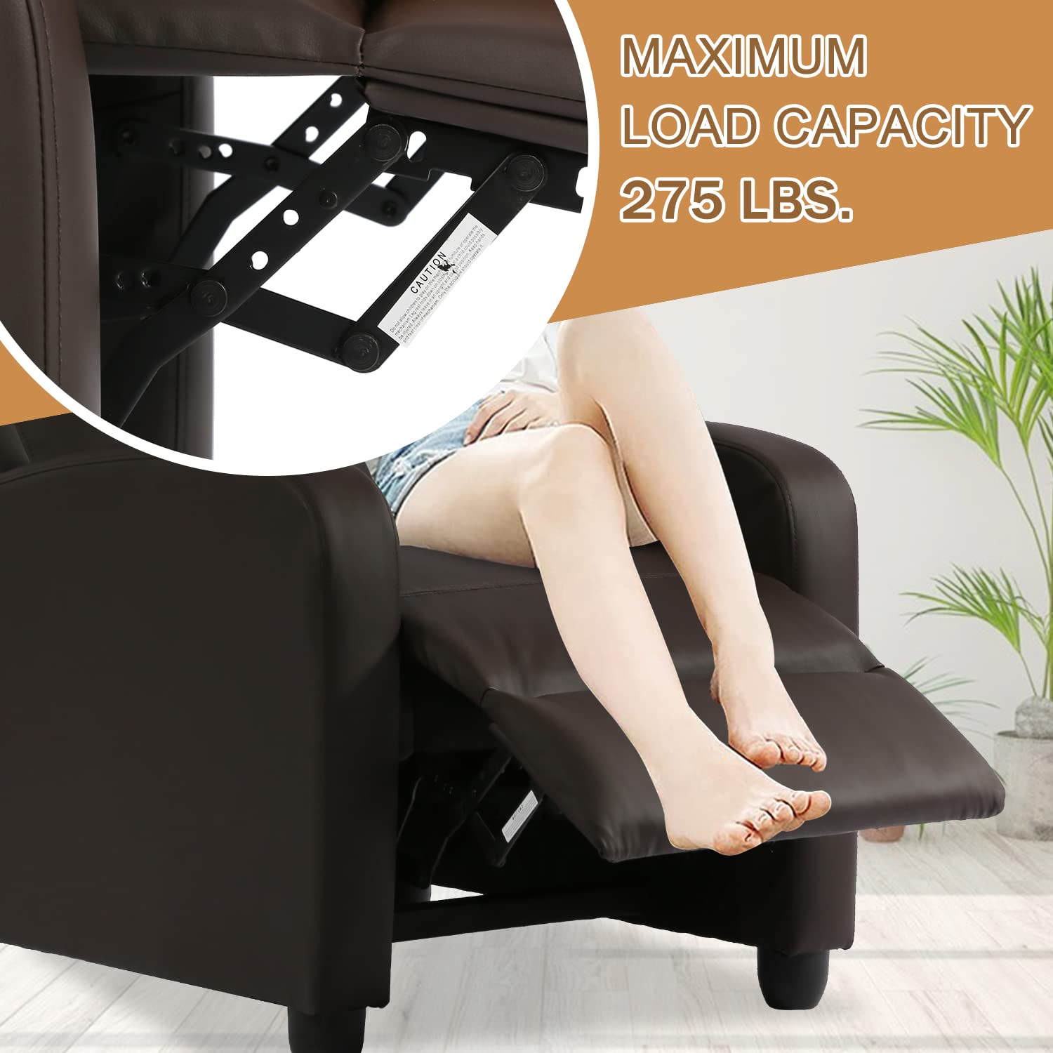MKDLUFEI Recliner Chair, Adjustable PU Leather Single Sofa Chair, Recliners Chair with Upgraded Footrest for Adults, Small Recliner Chair for Small Spaces, Living Room, Bedroom, Brown
