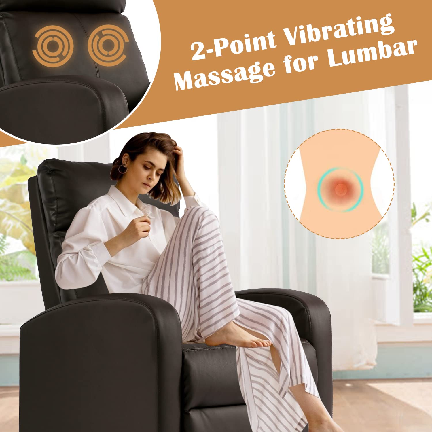 - 【Reclining Chair with Massage】8 massage modes, can meet your different needs. You can enjoy your favorite sitting positions on this massage chair recliner, no matter whether you prefer sitting up straight or with your legs up, or lying flat. When you lean back on the sofa, you can turn on the massage with the remote control and enjoy the living room chairs for comfortable TV viewing, and the occasional nap or listen to the music or reading books on the chair!