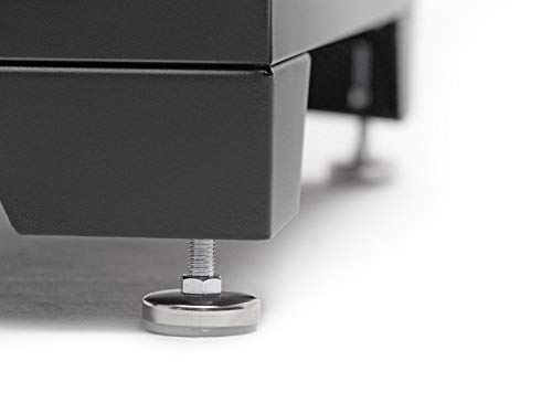 - Height-adjustable steel shelves accommodate different sized items