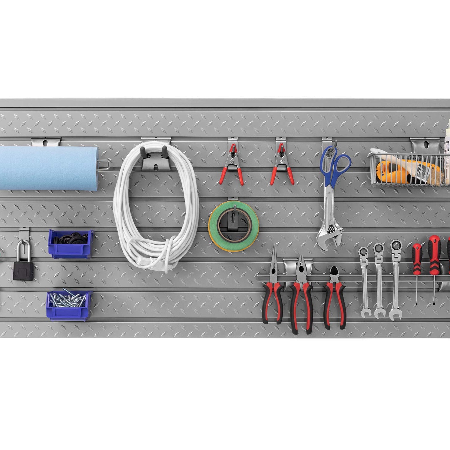 NewAge Products Pro Series 56-Inch x 24.5-Inch Diamond Plate Silver Slatwall Backsplash, Heavy Duty Steel Garage Wall Organizers, 51713