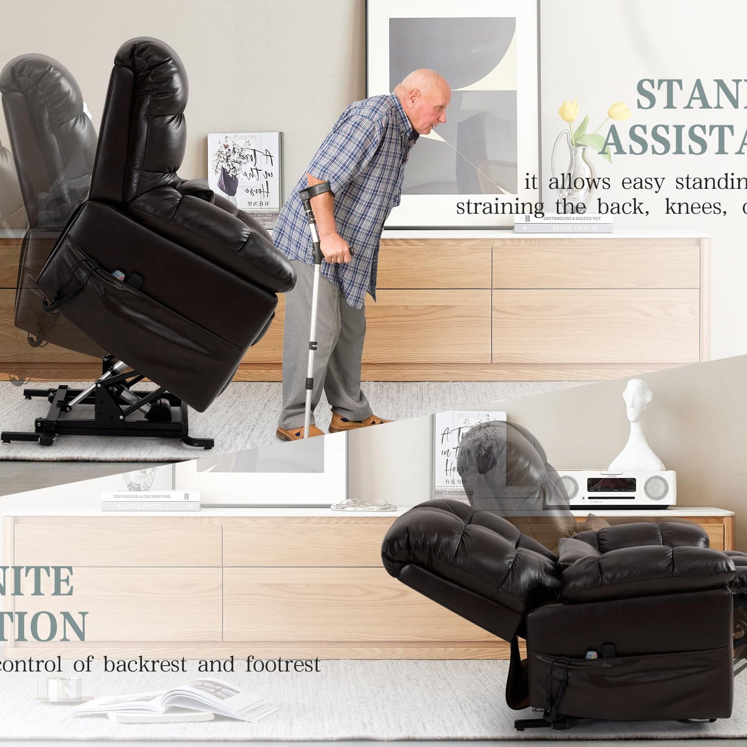- 【Triple Motors Lift Recliner Chair】Powered by silent triple motors, this lift recliner chair offers smoother and steadier operation with enhanced functionality compared to standard recliners. The backrest and footrest can be independently controlled, and with 2 remote controls (one for lift/recline and the other for massage), you can adjust the chair effortlessly—ideal for those recovering from shoulder surgery or mobility issues.