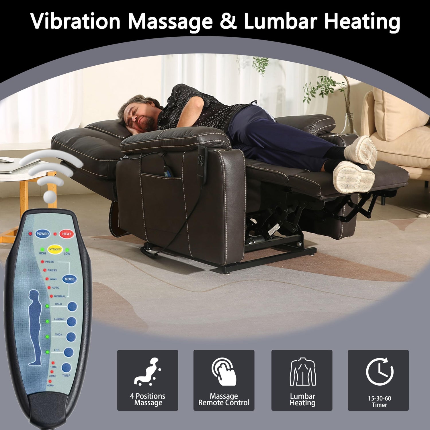 - POWER LIFT CHAIR WITH HIGH-DENSITY FOAM: Your lift chair uses the best exclusive high-density sponge to completely solve the problem of insufficient support for the head, back, waist, buttocks, and legs so that you can sit for a long time without pain. In addition, we polish each piece of leather manually with advanced Italian technology, so it is waterproof and will not stain or damage your clothes. You will have a good time reading, sleeping, watching TV, and so on.