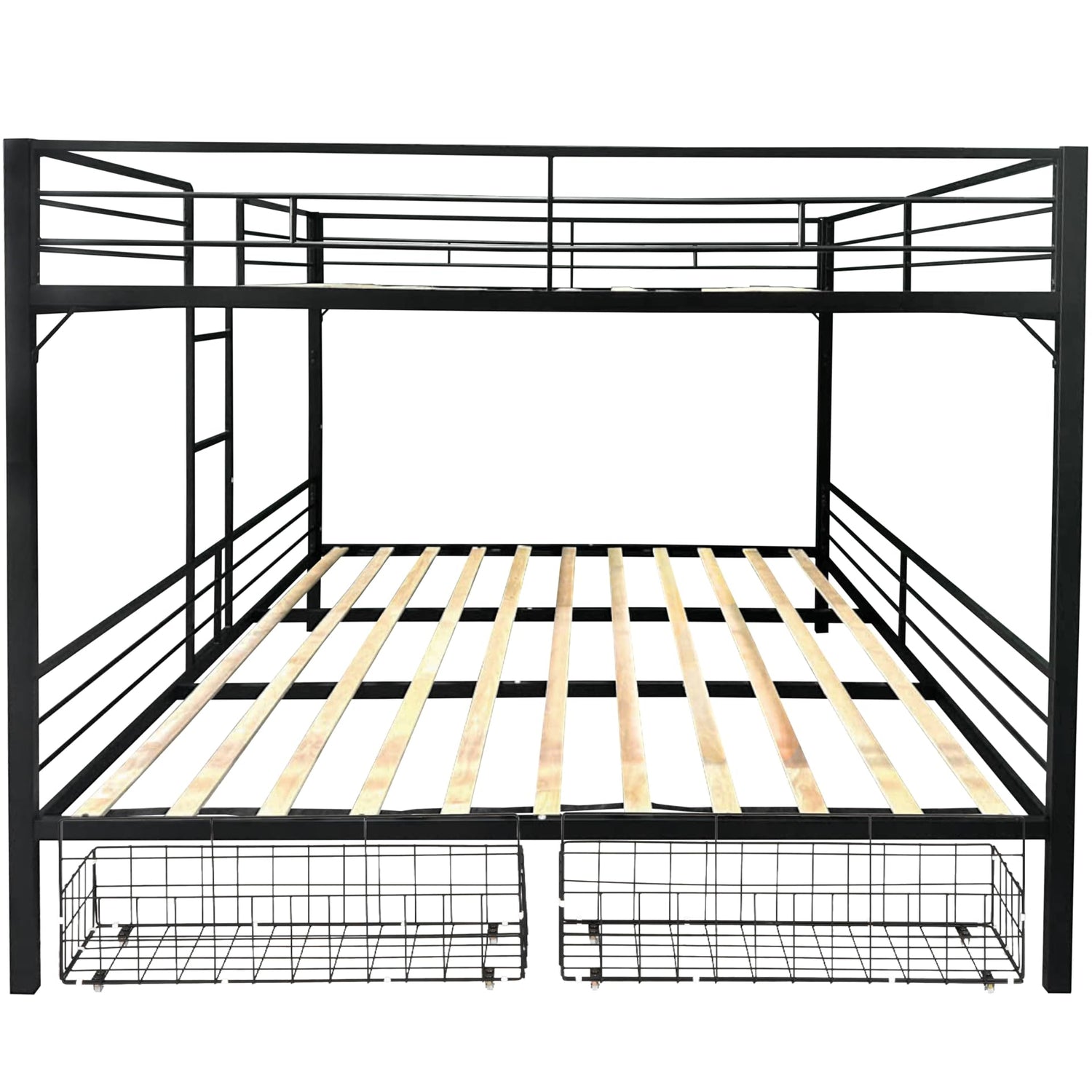 PVWIIK King Over King Bunk Bed with Drawer and Guardrails for Adult Teenagers Bedroom,Metal Bed Frame w/Ladder for Girls, Boys,Modern Style Bed/No Box Spring Required,Black