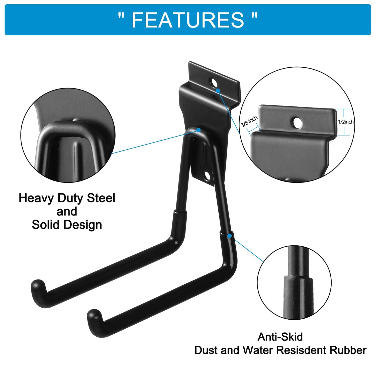 - [Heavy Duty Garage Slatwall Hooks] Hooks are made of high density steel and desined in solid structure, can be durable for years.