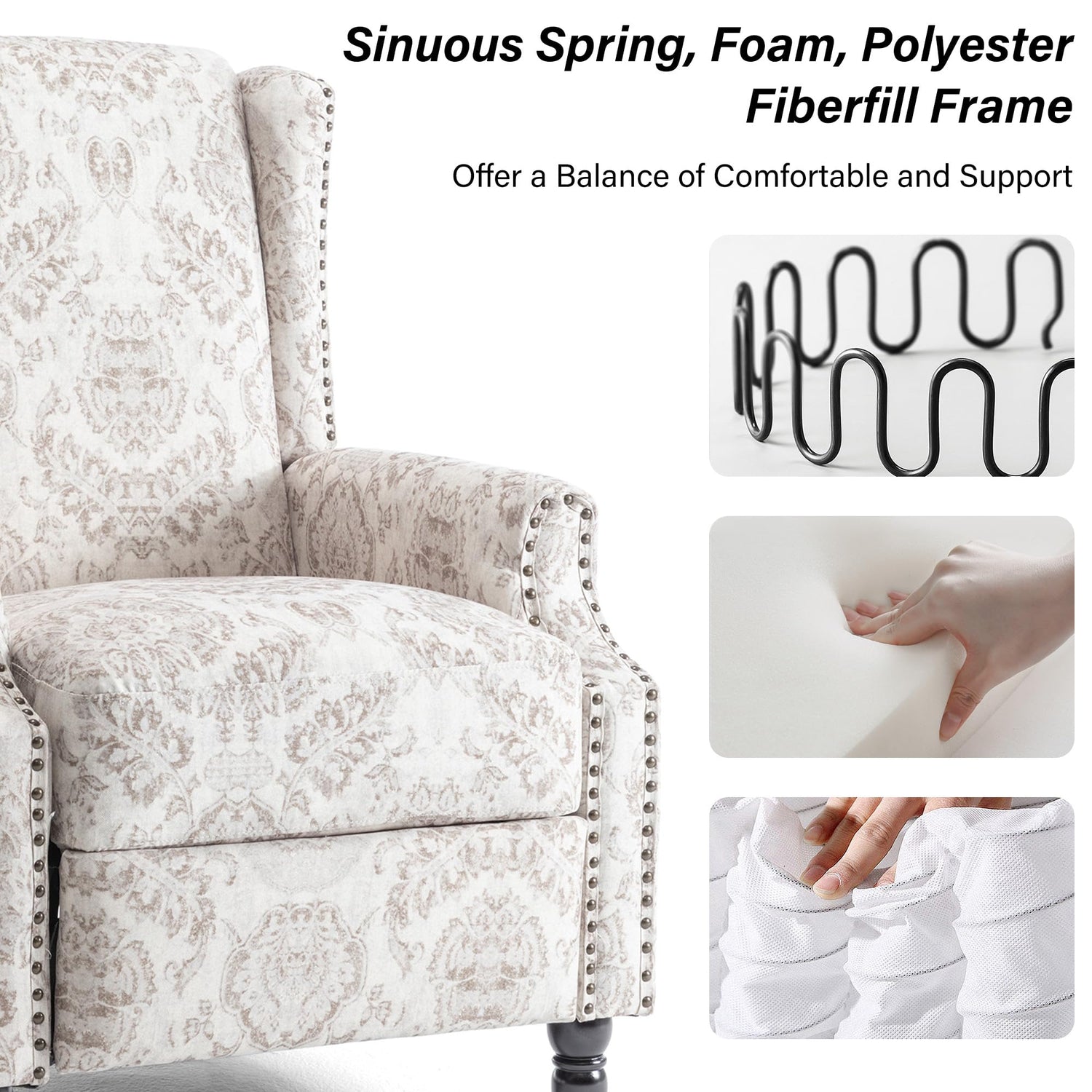 Recliner Chair, Upholstered Wingback Floral Pushback Armchair with Adjustable Backrest & Footrest, Comfy Accent Chair Reading Single Sofa for Small Spaces, Living Room, Bedroom (Beige, Set of 1)