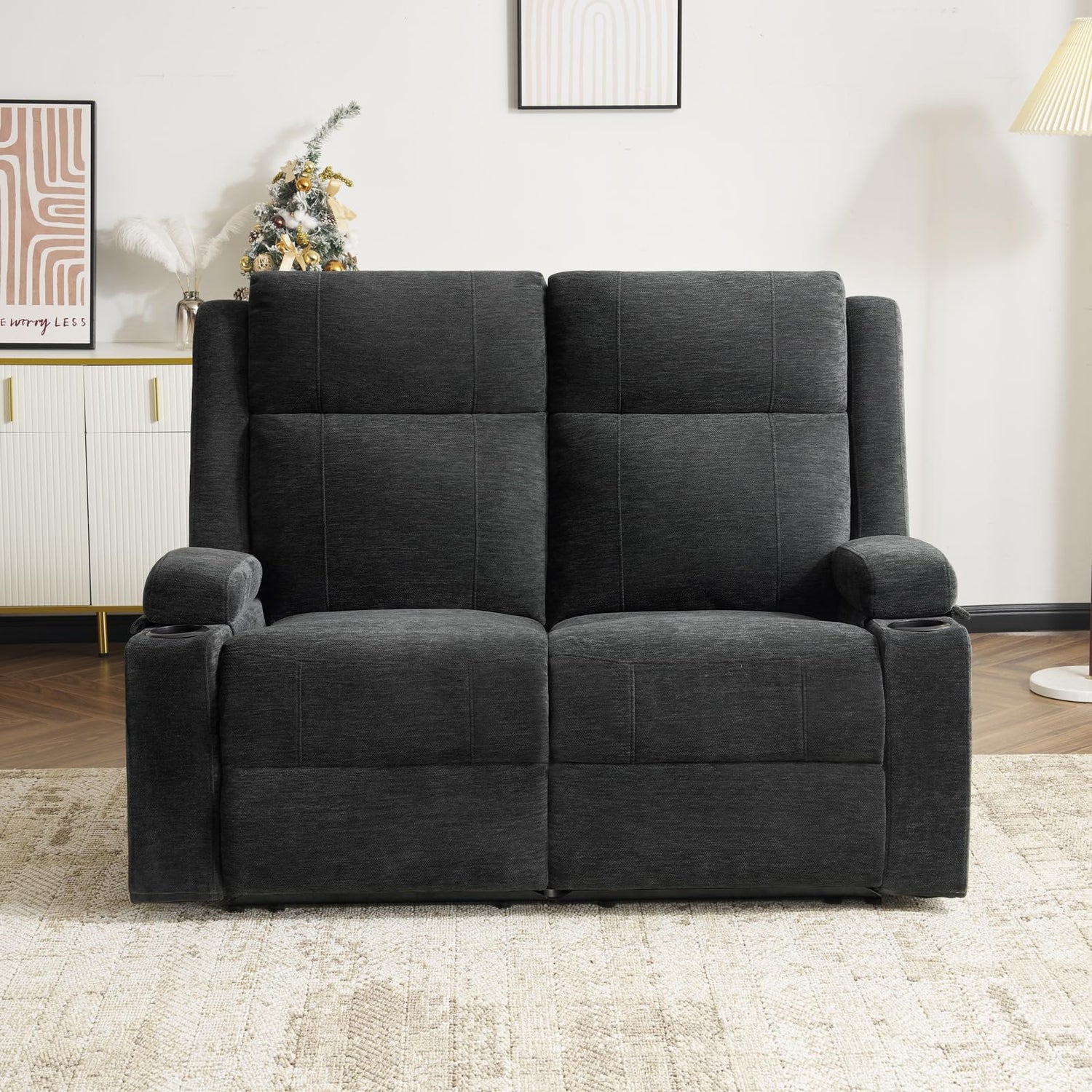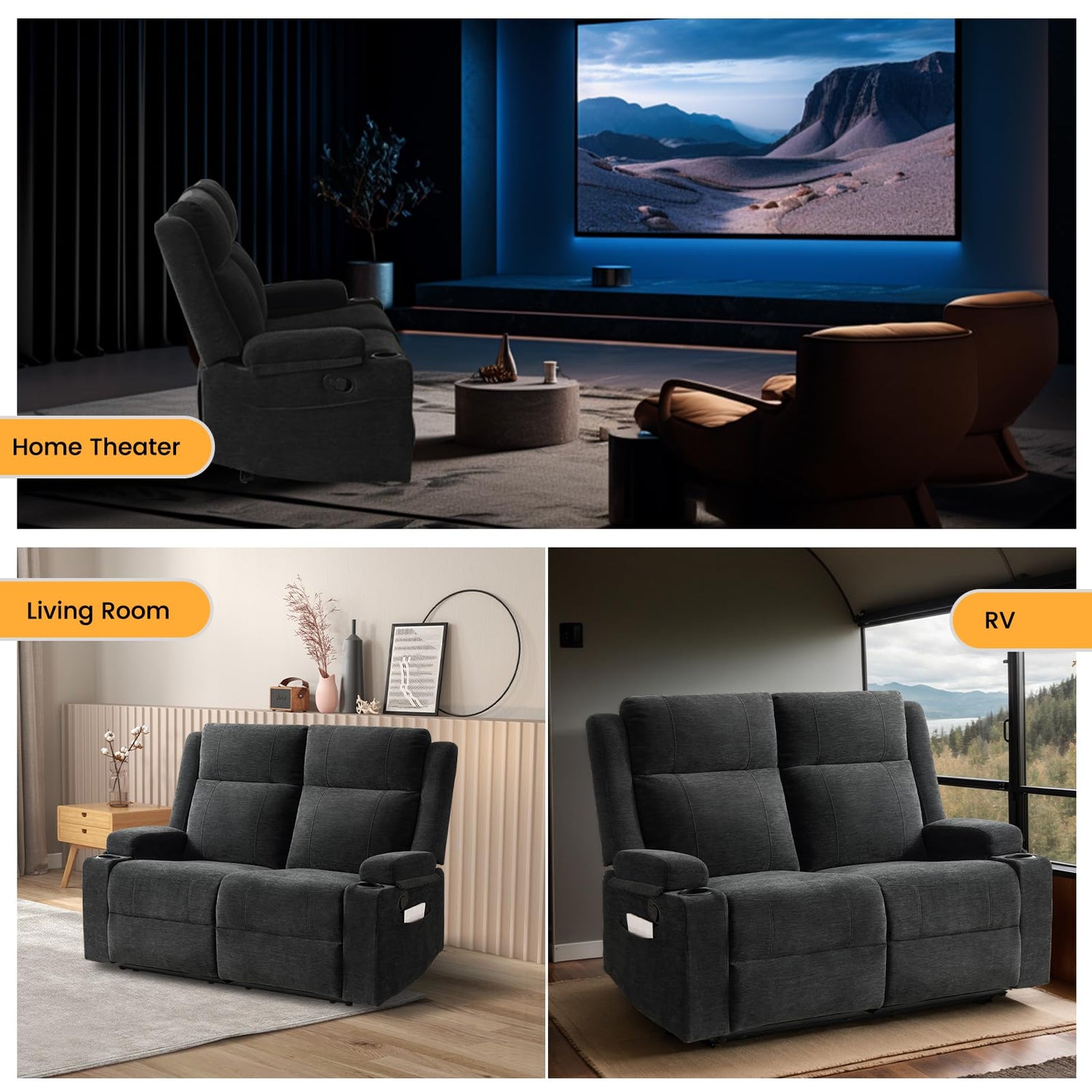RIHEREFY Loveseat Recliner Sofa, Double Recliner Loveseat with Adjustable Footrest & Cup Holder, Wall Hugger Sofa for Living Room & Home Theater & RV(Black)