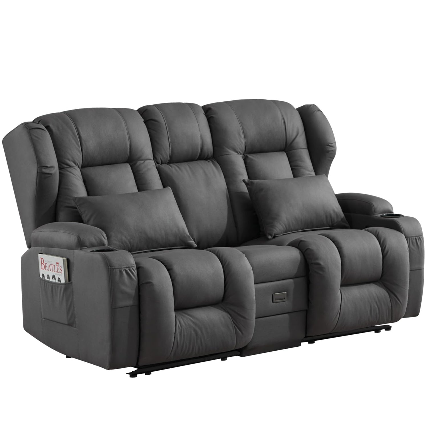 - Multi-Functional Console: Designed for home theater lovers, this home theater seating features 4 built-in cup holders so you can enjoy your drinks without spills. The flip-up storage console and side pockets keep remotes, gaming controllers, and essentials within easy reach, so you can fully relax and immerse yourself in the moment