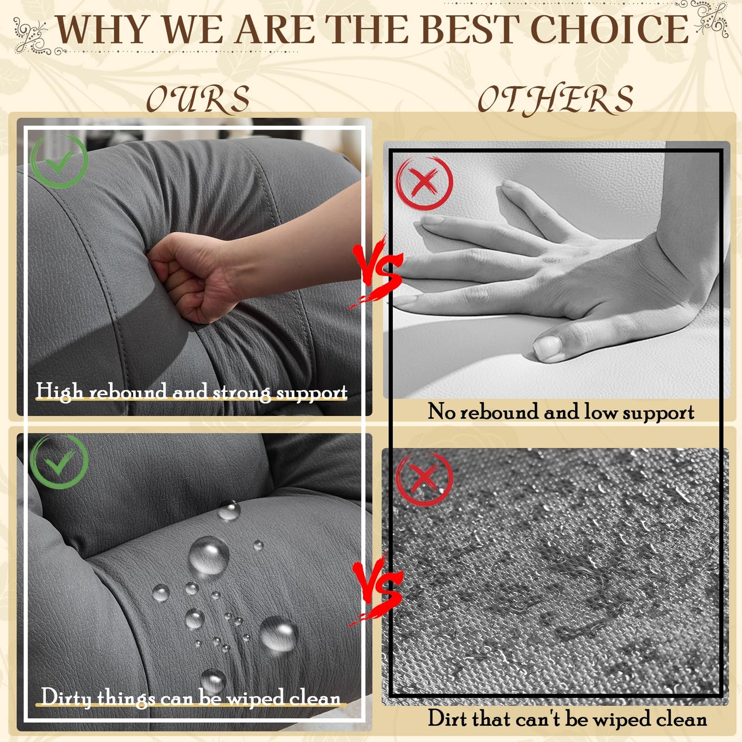 - Manual Loveseat Recliner: Seamlessly adjust your seating with a simple pull of the side handle. The footrest lifts smoothly, letting you recline into your ideal position. To reset, just lean forward and press the footrest down with your feet. Unlike electric models, this manual recliner is always ready, more durable, and never at risk of power failure—offering long-term reliability and peace of mind
