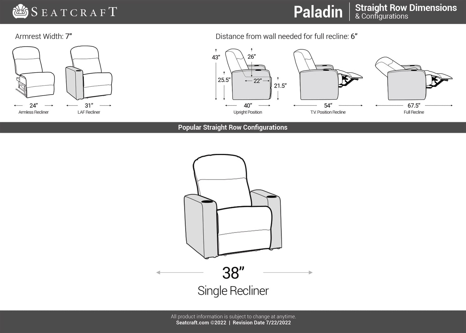 Seatcraft Paladin Home Theater Seating, Heat & Massage, Powered Headrest, Powered Lumbar, Italian Leather, Powered Recline, Single Recliner, Black