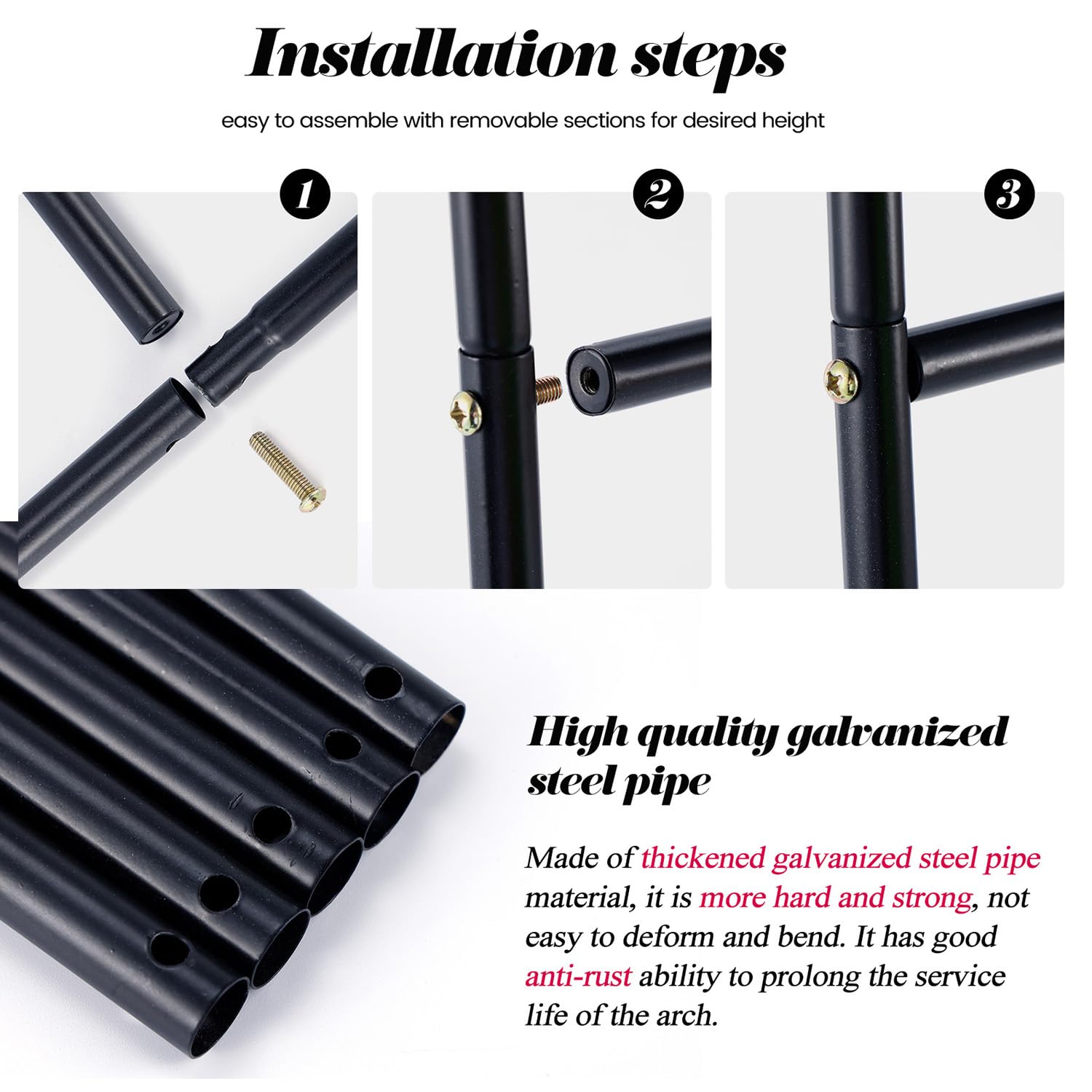 - STURDY MATERIAL: Made of better quality; tougher and rust-proof galvanized steel tubes. The inner wall of the steel pipe is thickened to 0.5 mm; which is twice as heavy as the ordinary products and not easy to bend; deform and tilt. Can be used for wedding arch; garden arch trellis; garden arbor