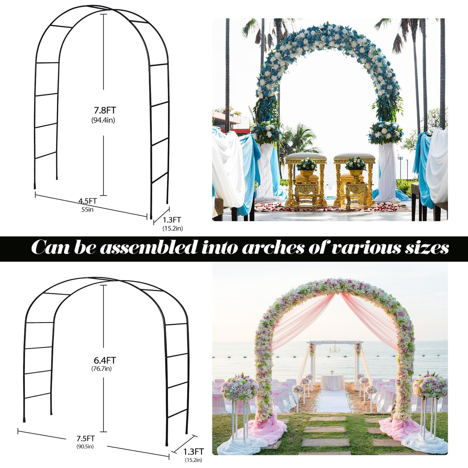 - CONVERTIBLE SIZE: Assembled into 4.6*7.8 Ft or 6.4*7.5 Ft; quickly adjust the size of the metal arch by disassembling and splicing the steel pipes according to the actual need