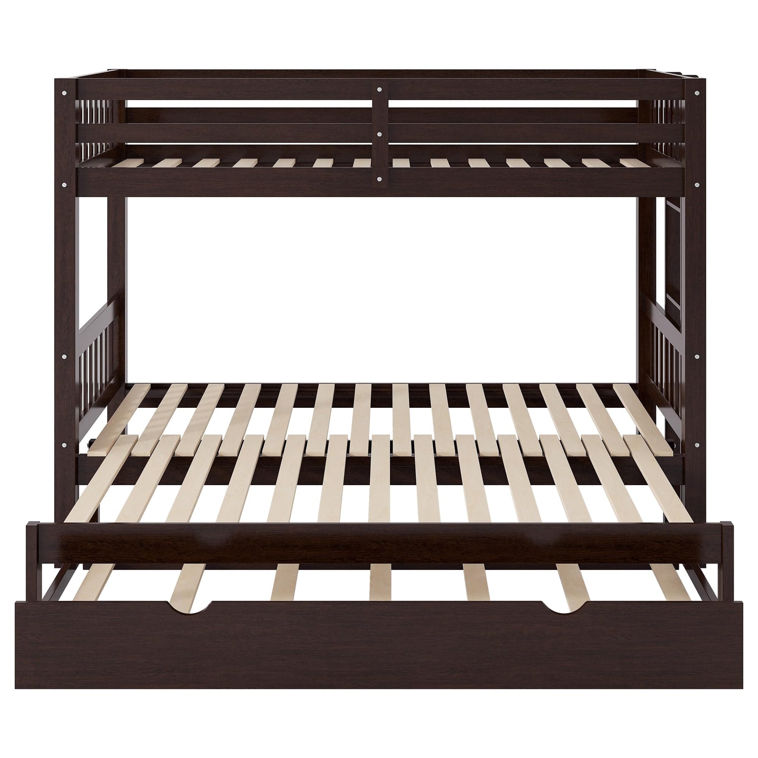 Twin Over Double Twin Bunk Bed with Trundle, Convertible Bottom Bed, Pull-Out Multi-Functional Bunk Bed Can for 4 People, Wooden Bunk Bed with Ladder and Safety Rail, Espresso