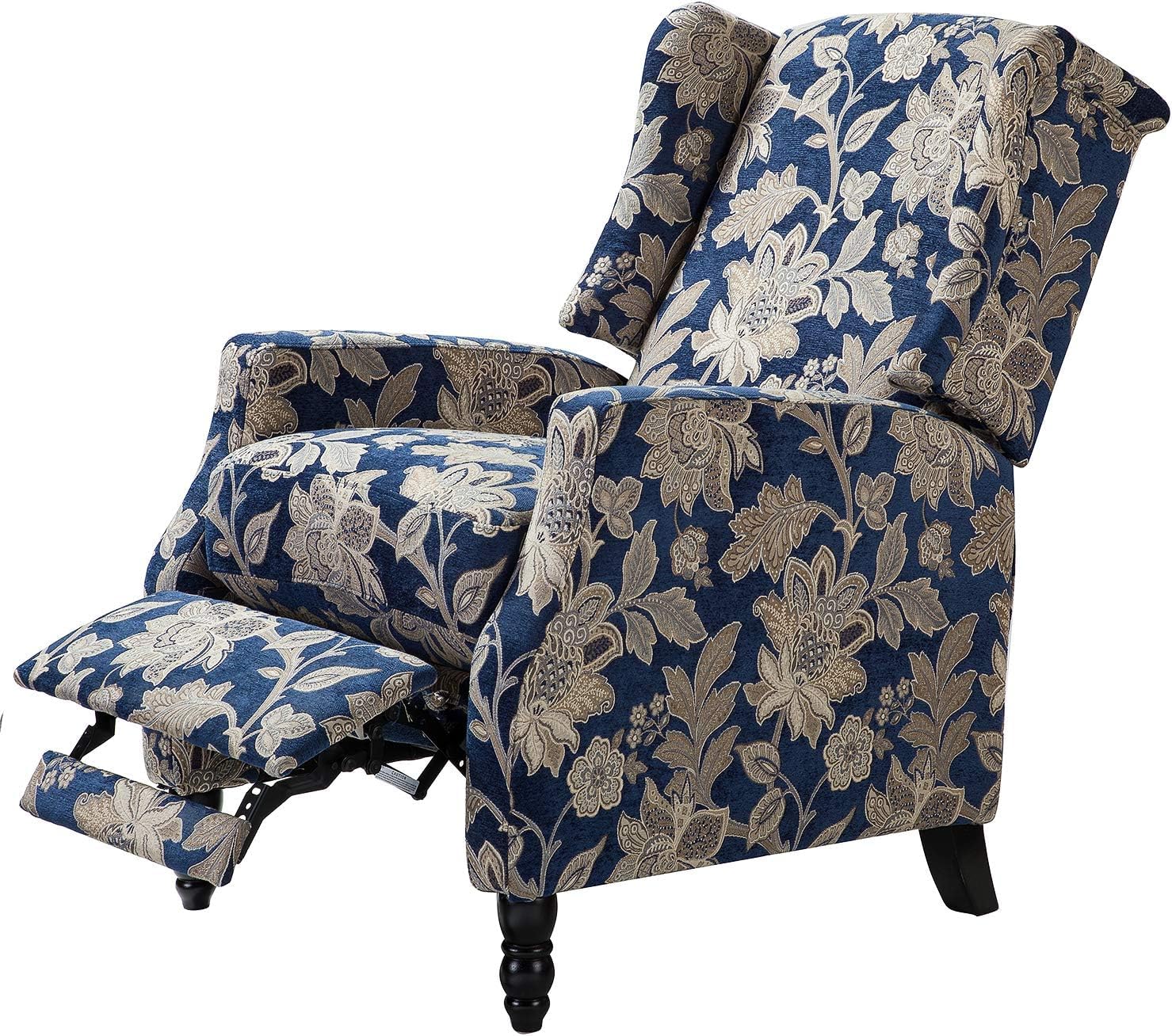 Upholstered Wingback Recliner Chair, Traditional Push Back Recliner Sofa, Mid Century Modern Lounge Armchair for Living Room, Home Theater Accent Chairs Recliners Couches (Garden)