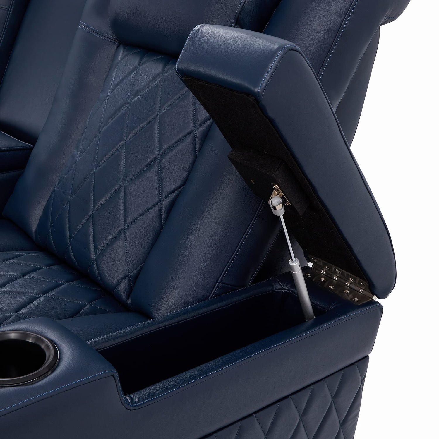 - Features Include: Powered Recline, Power Headrest & Power Lumbar Support So You Can Adjust The Cushions To Fit The Shape of Your Spine, Deep Arm Storage Compartment, LED-Lit Cup Holder & Base Lighting, and USB Port to Charge Your Devices.