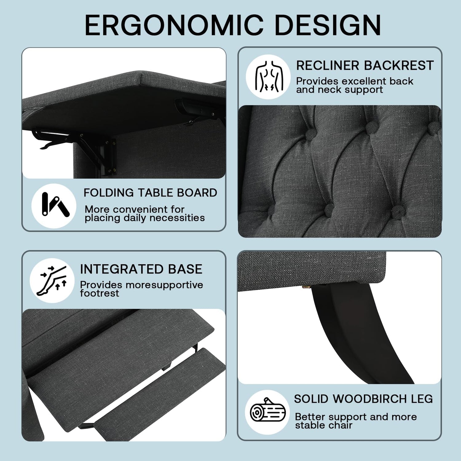 Details: Gray Manual Recliner Chair with Foldable Side Table USB Charger Wingback Tufted, Wall Hugger Recliners for Small Spaces, Living Room, Bedroom Inexpensive Lazy Boy Style Recliner