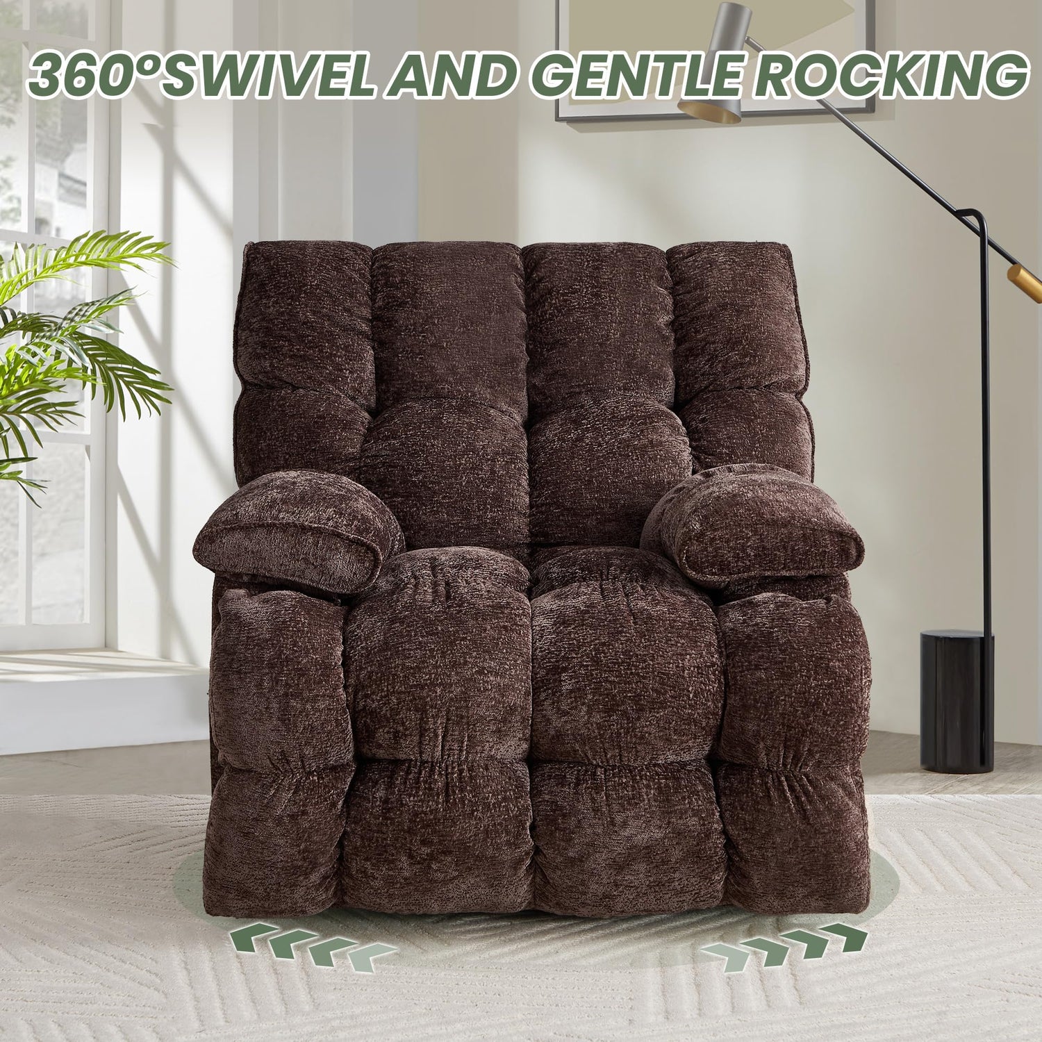 VIKAYAMICS Oversized Rocker Recliner Chair 42” Power Swivel Recliner for Living Room Overstuffed Extra Wide Rocking Recliners with Breathable Soft Fabric Up to 400lbs(Manual Brown)
