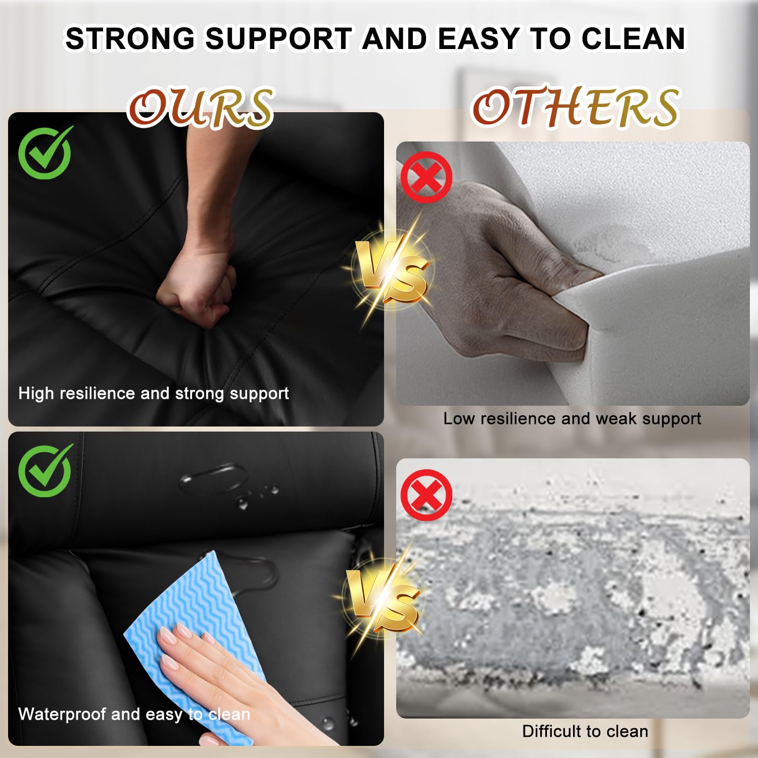 - DOUBLE MANUAL RECLINER LOVESEAT: Our loveseat recliner features a split back design with dual manual independent control, allowing you to adjust one seat from 95° to 150° while keeping the other upright. Ideal for reading, watching TV, or napping, this PU push-back loveseat offers customizable comfort for everyone. With easy-to-use hand-pull rings and durable construction, this double recliner is perfect for any living room, home theater, or RV.