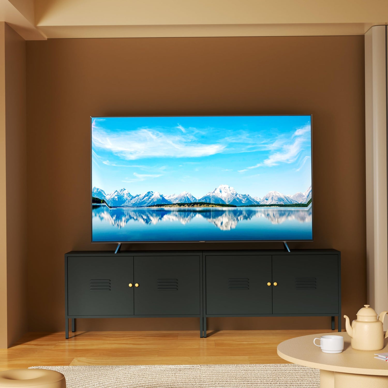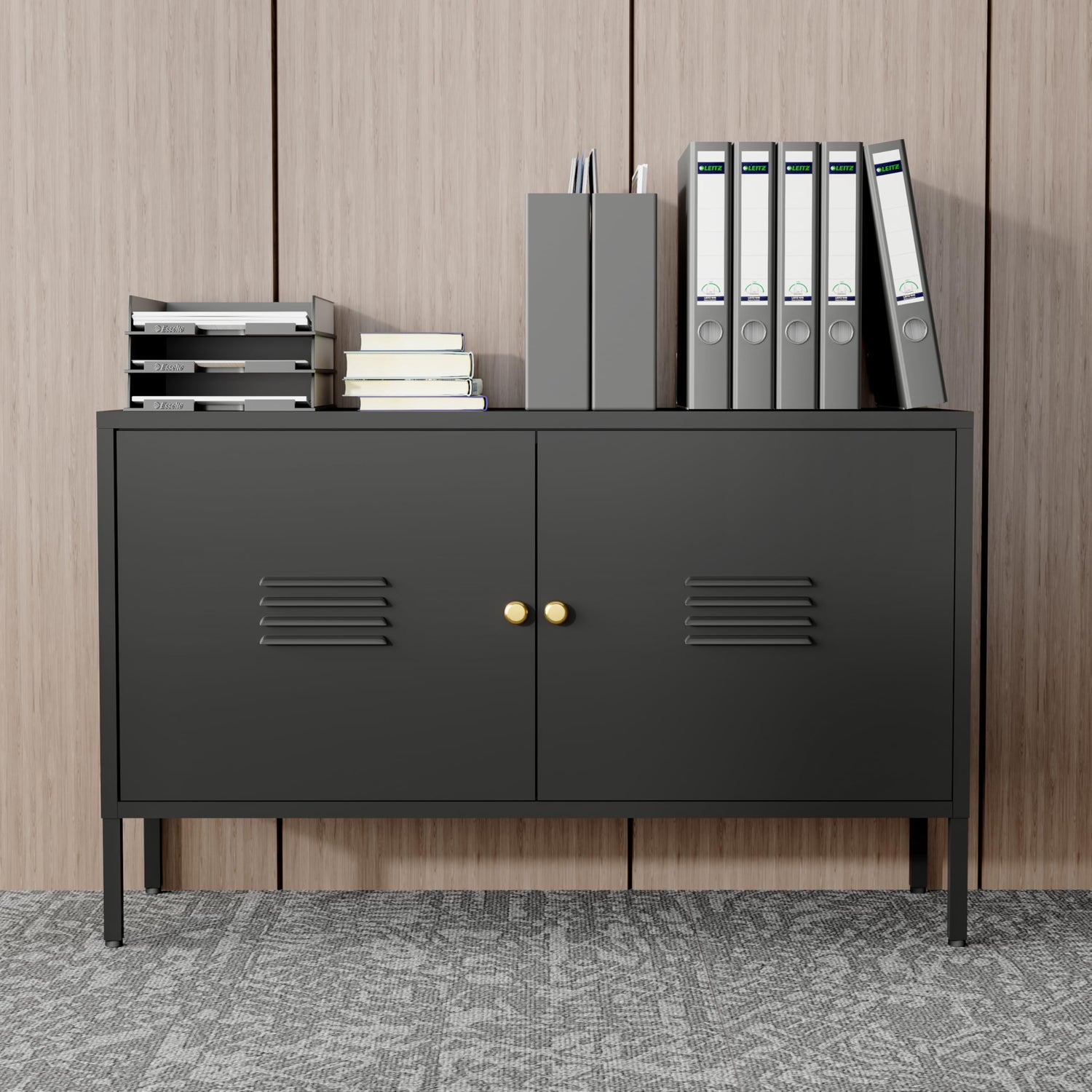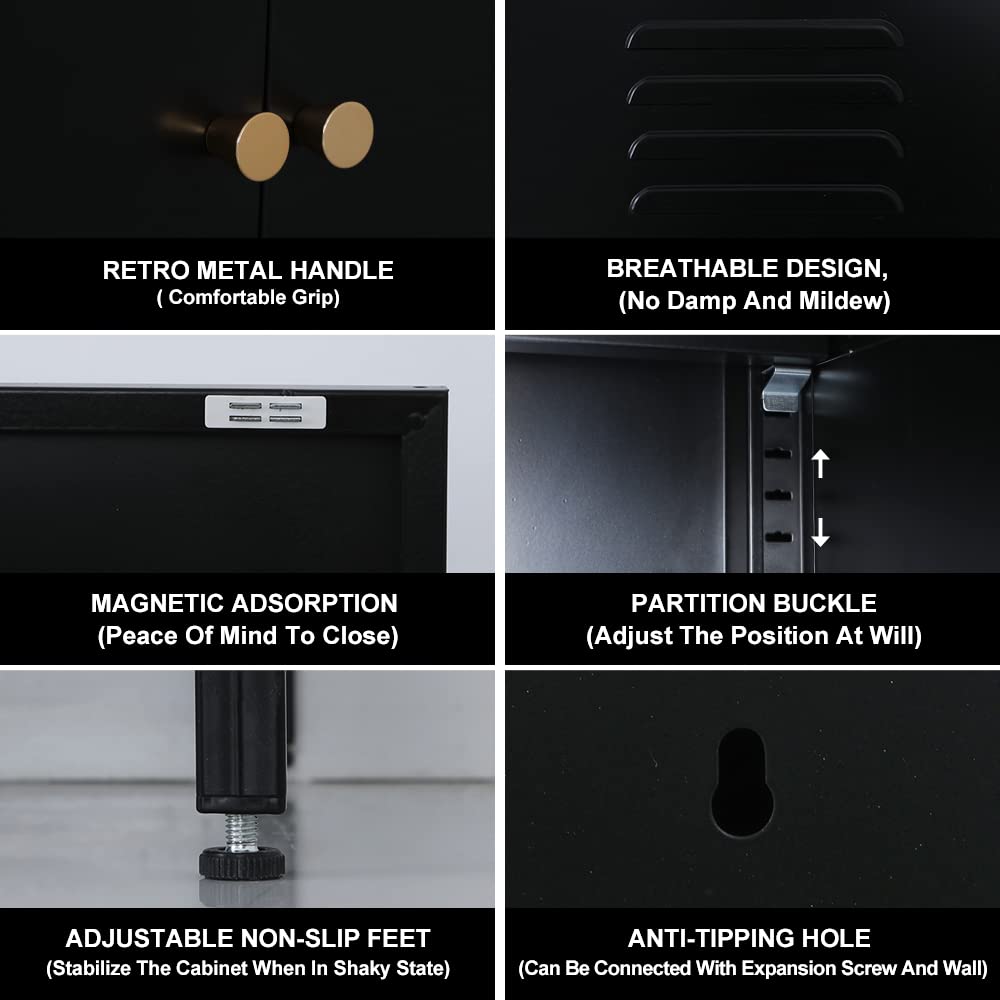 WISUNO Metal Accent Storage Cabinet for Bed Room,Living Room,Home,Hotel,Office,Garage,2-Tier, Removable Shelf (2 Door Accent Cabinet, Black)