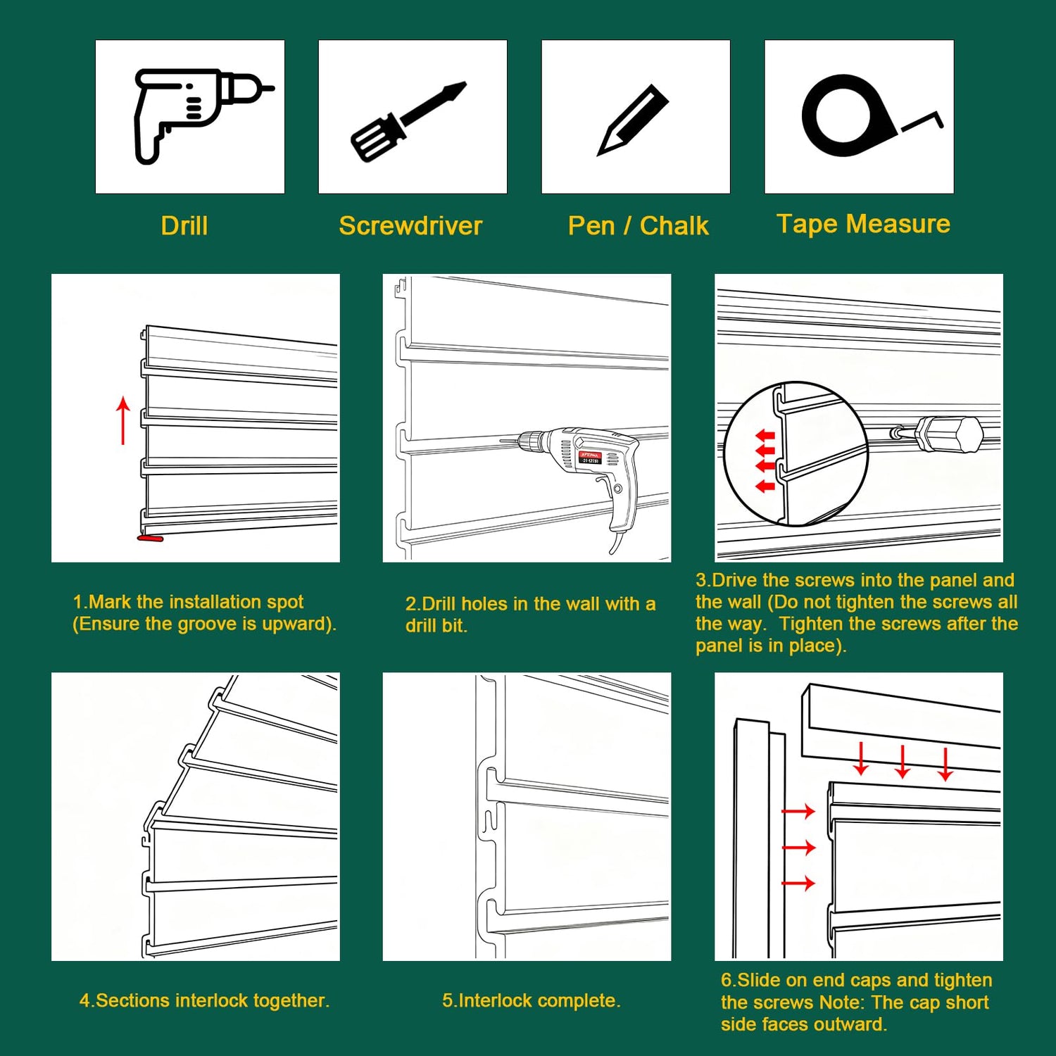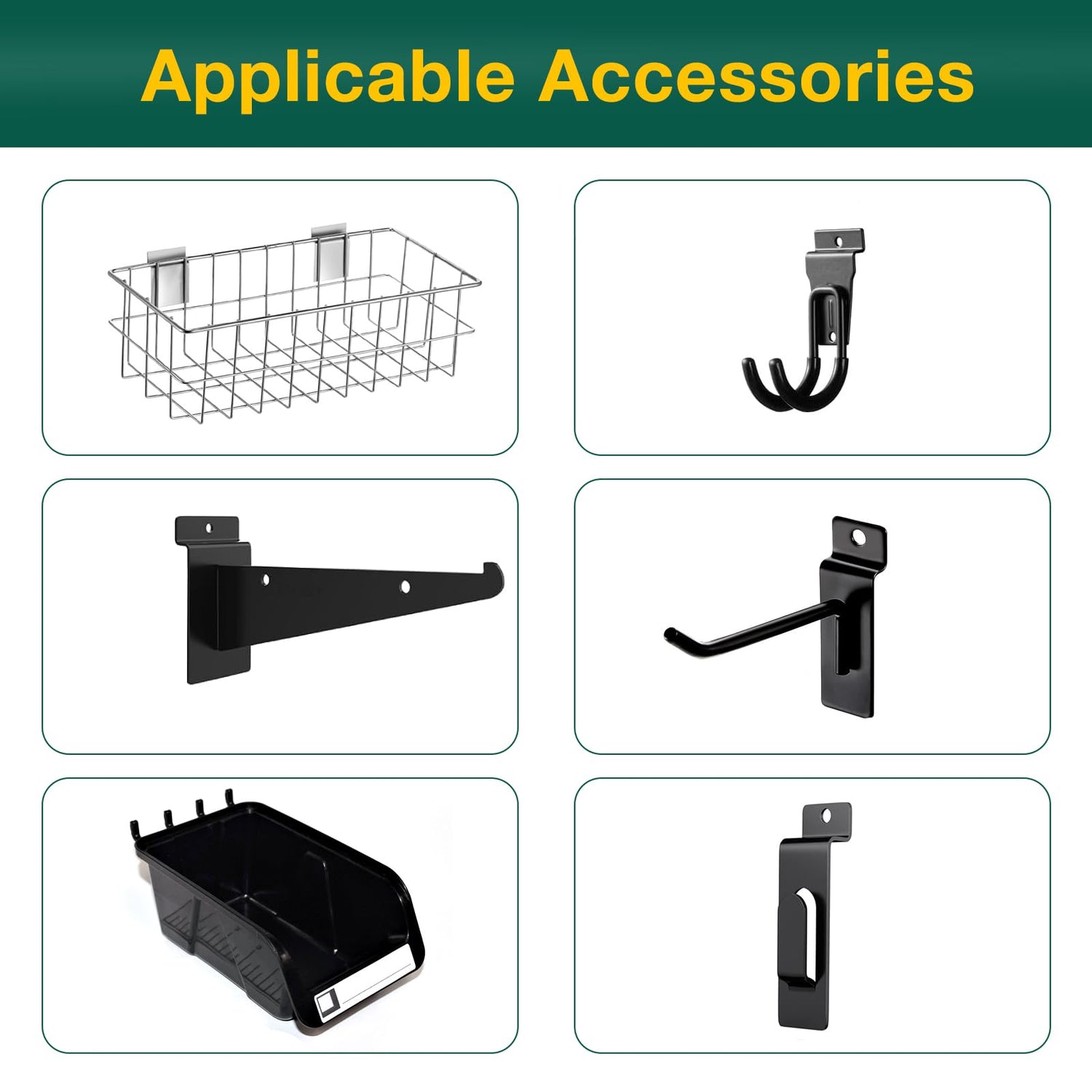- Versatile Applications - The slat wall panels feature evenly spaced horizontal grooves that are compatible with various hooks, brackets, and accessories, enabling a flexible and customizable wall storage system. This meets diverse needs in retail stores, garages, warehouses, sheds, homes, offices, and more.