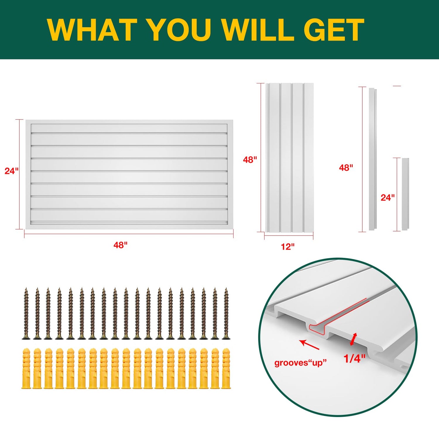 Yuzzy Slat Wall Paneling 2 x 4ft, Garage Slatwall Panel Wall Storage Systems, Heavy Duty PVC Garage Wall Organization (White)