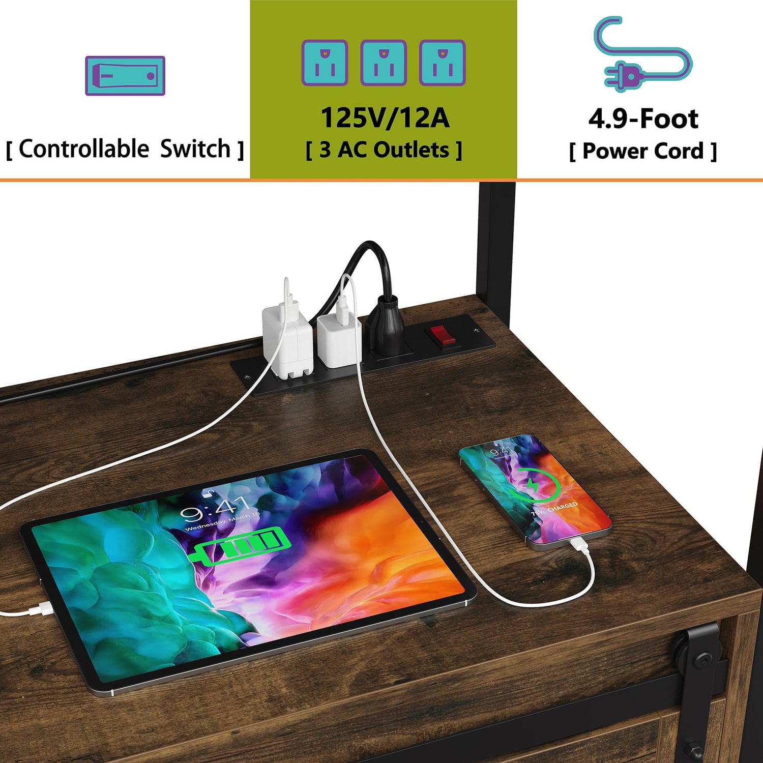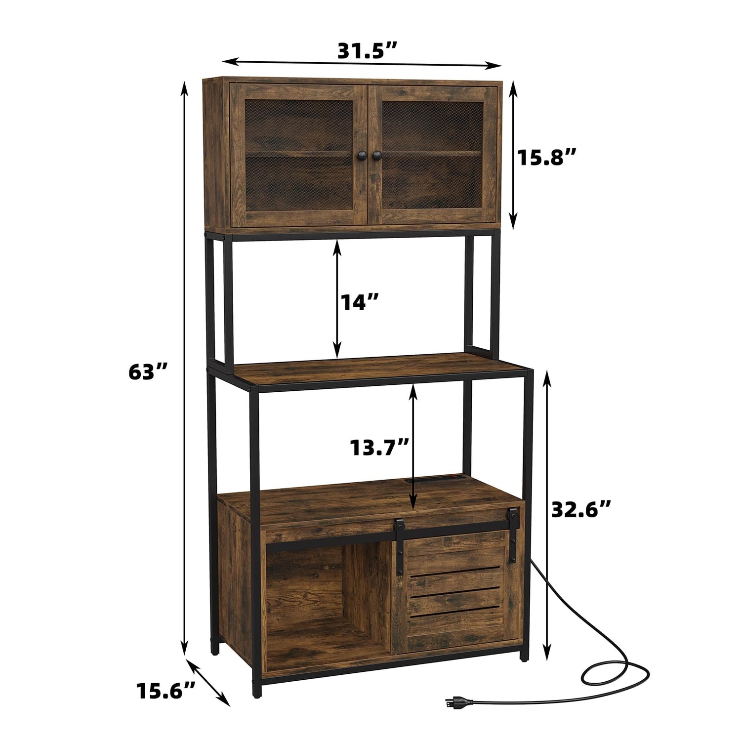 - 【Built-in Power Station】The bakers rack with power outlet has 3 AC outlets which can meet the simultaneous power needs of multiple appliances such as microwave ovens, bread machines, coffee machines, and phones & Ipad
