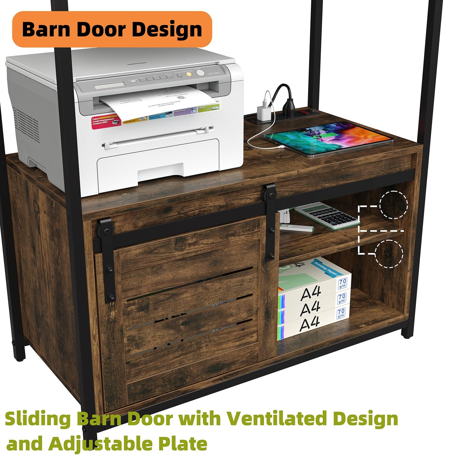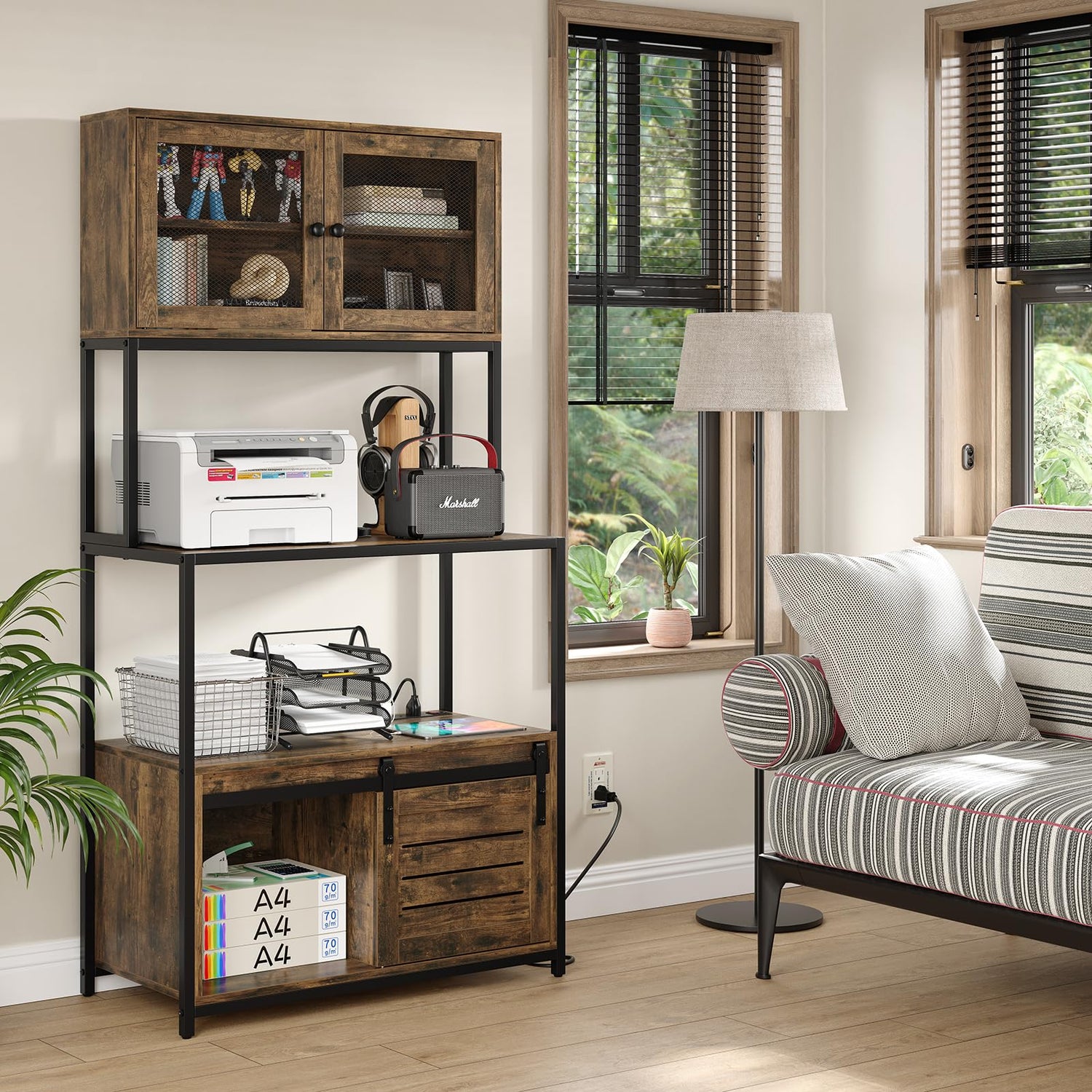 Furniouse 6-Tier Kitchen Bakers Rack with Power Outlet, Industrial Microwave Oven Stand with Shelves, Kitchen Utility Storage Shelf with Cabinet, Standing Storage Rack (Rustic Brown)