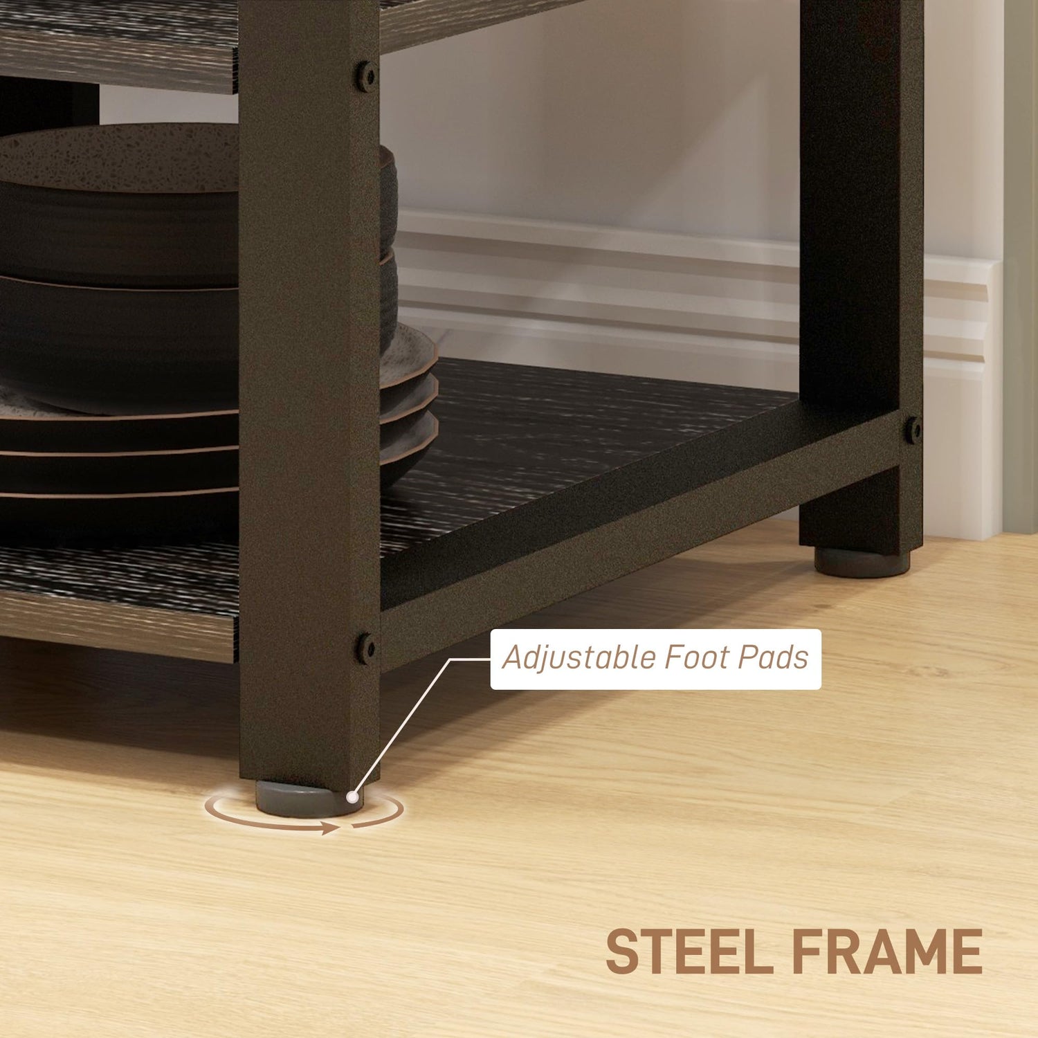 • Quality Build: Our kitchen baker's rack is crafted of a solid steel frame and melamine-coated particleboard for sturdiness and easy cleaning. The adjustable foot pads keep our kitchen shelves stable and protect your floor from scratches.