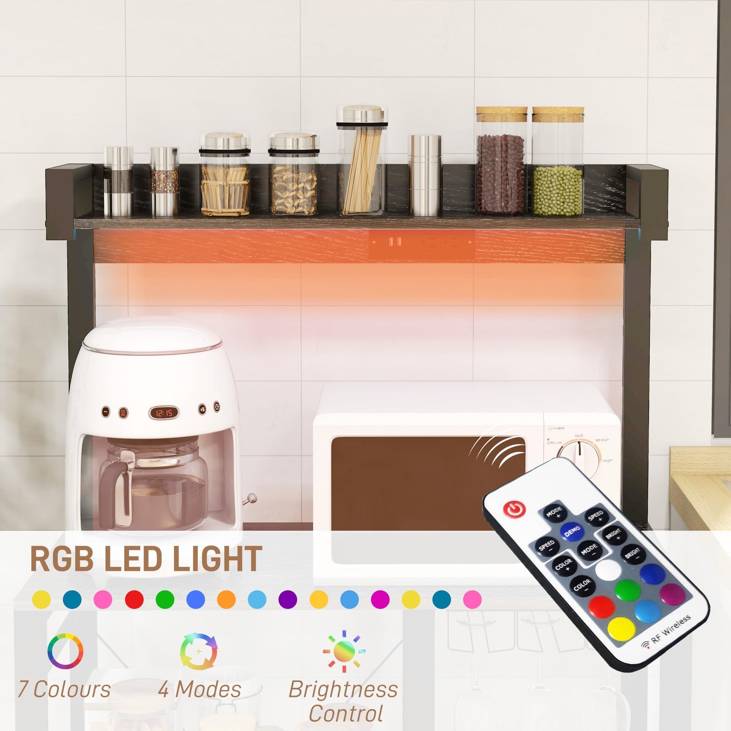 HOMCOM Bakers Racks with Power Outlet and LED Lights, Coffee Bar Table for Kitchens with Storage, Microwave Stand with Glass Holders, Kitchen Storage Shelf Rack with Multiple Shelves, Gray