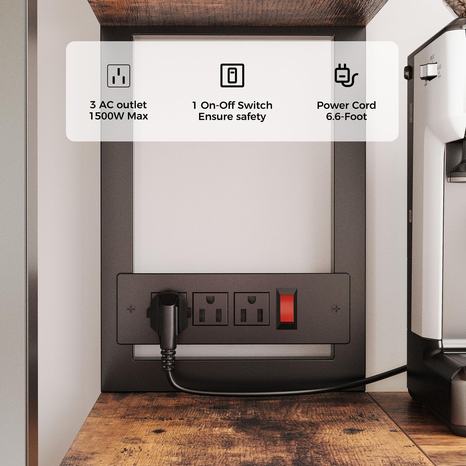 - Flexible Charging: This bakers rack for kitchens is equipped with a built-in power strip that includes 3 AC outlets and an on-off switch. This feature allows you to conveniently power your microwave, coffee maker.