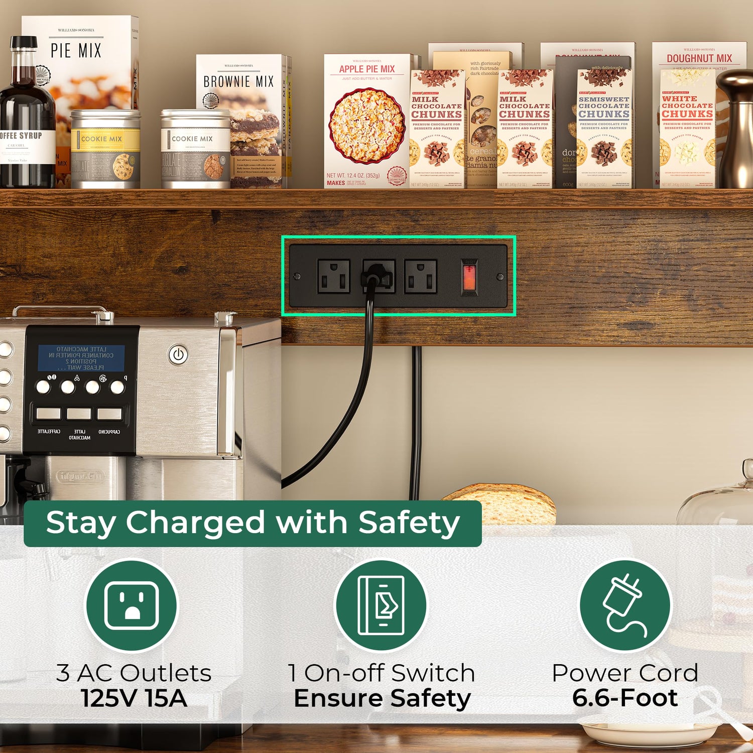 Imagine having everything you need within arm’s reach, thanks to the integrated power strip featuring three AC outlets and a conveniently placed on-off switch. No more scrambling to find power outlets while you bake or prepare your morning coffee. Enjoy a tidy and safe kitchen environment, with the ability to easily switch off any plugged-in appliances when they’re not in use.
