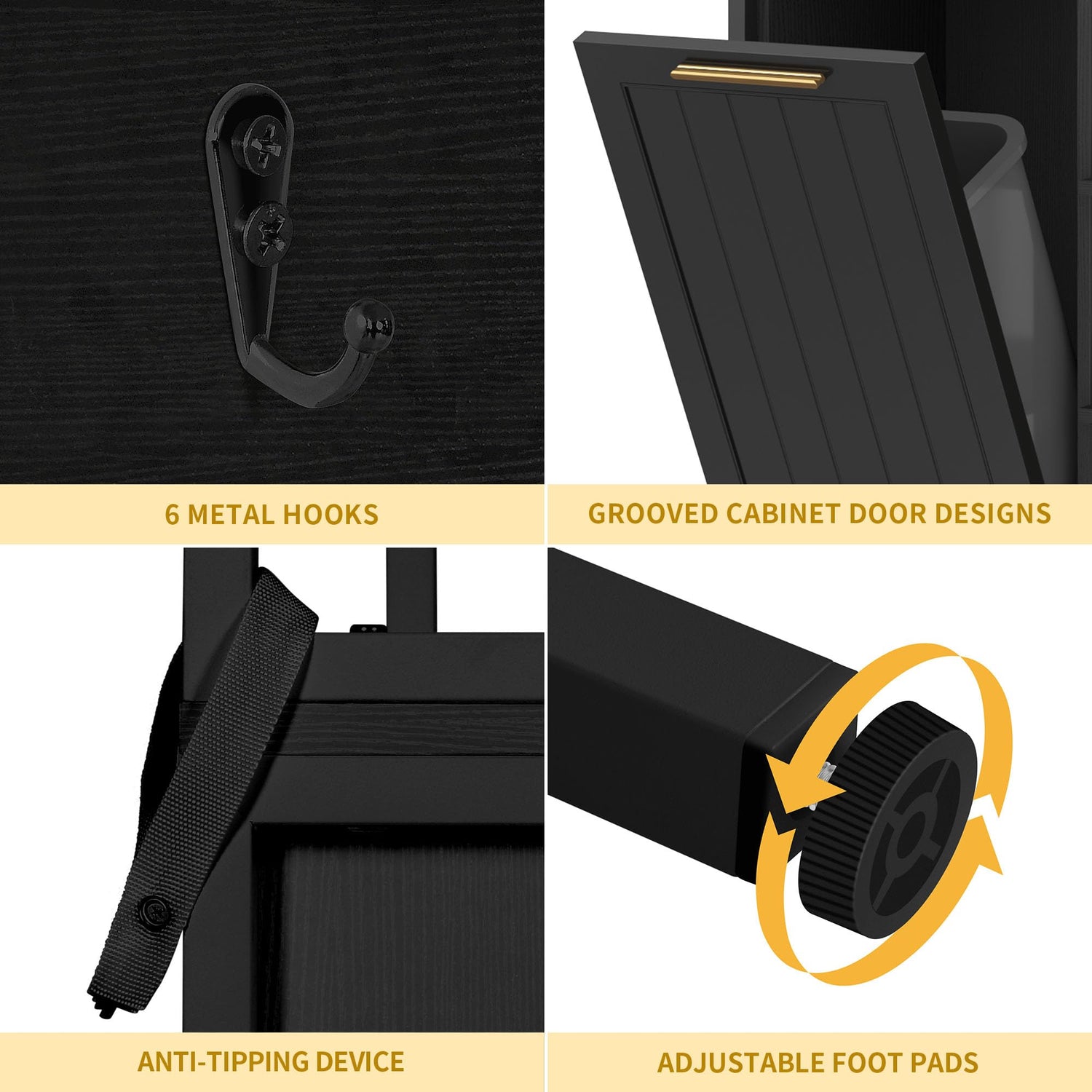 • Conceal Clutter: Say goodbye to unsightly countertop trash cans! Our baker's rack boasts a genius tilt-out trash can cabinet, accommodating a 10-gallon bin and keeping your kitchen clean and organized