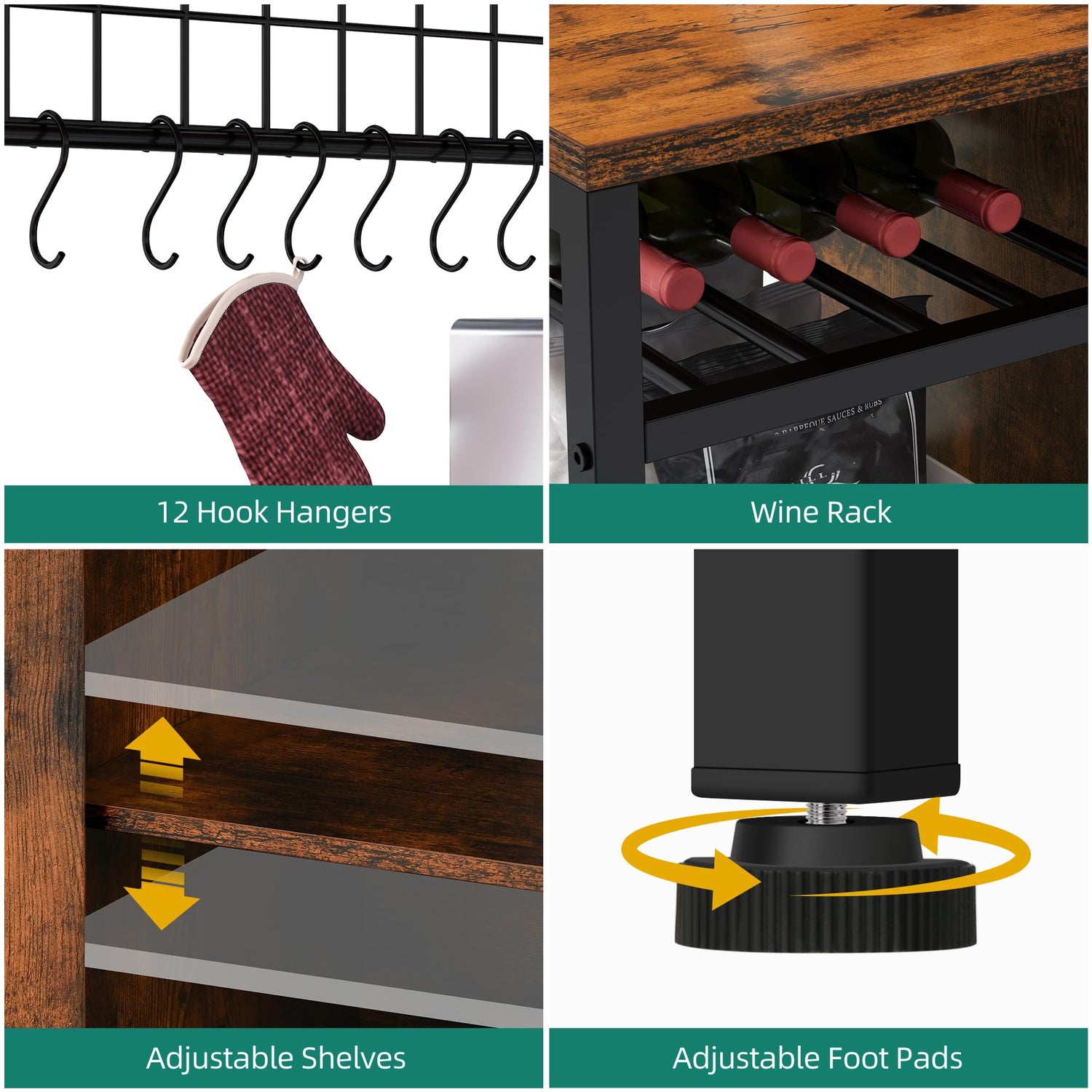 - Sturdy Storage Solution: Built with a strong iron frame and upgraded chipboard, this robust bakers rack provides reliable strength for all your needs. It excels as a microwave stand, coffee bar cabinet, spice rack organizer, or office storage unit