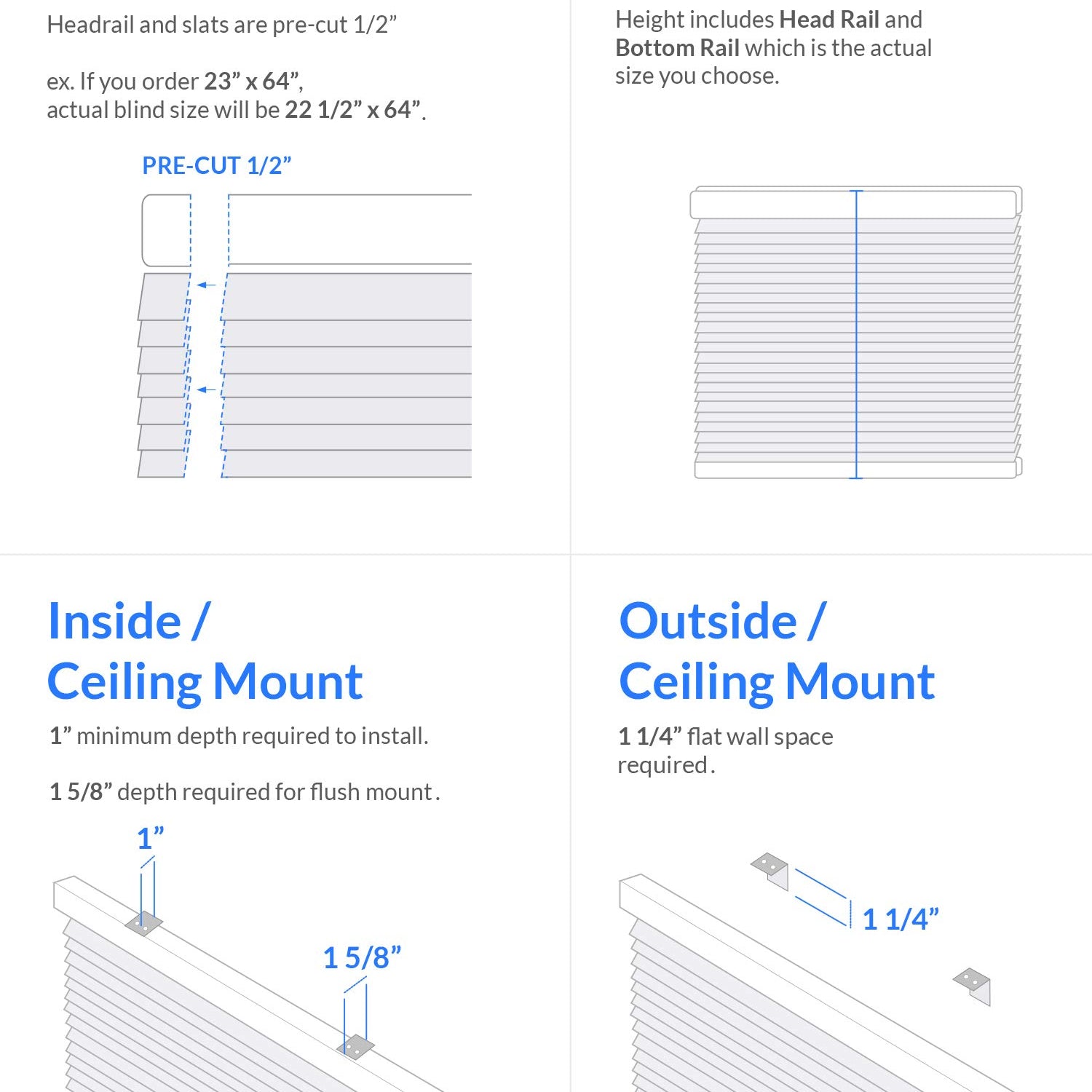 - Cordless Blinds - Our high quality mini blinds are designed with the customer’s needs in mind. Width has a 1/2-inch deduction. Hardware and instructions provided.